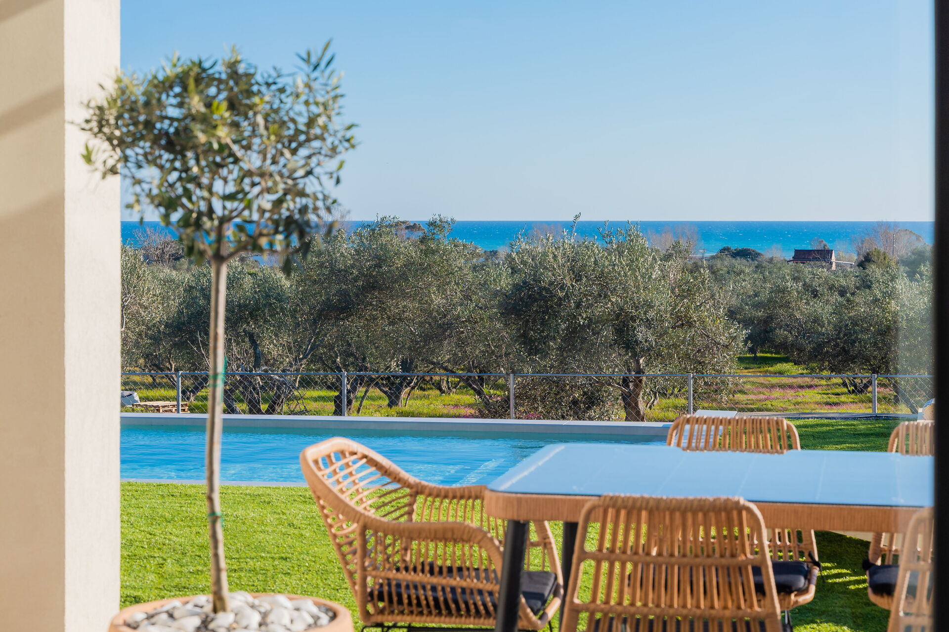 Villa Olivum is a stunning villa near the sea that can comfortably accommodate 6 people in 3 bedrooms.