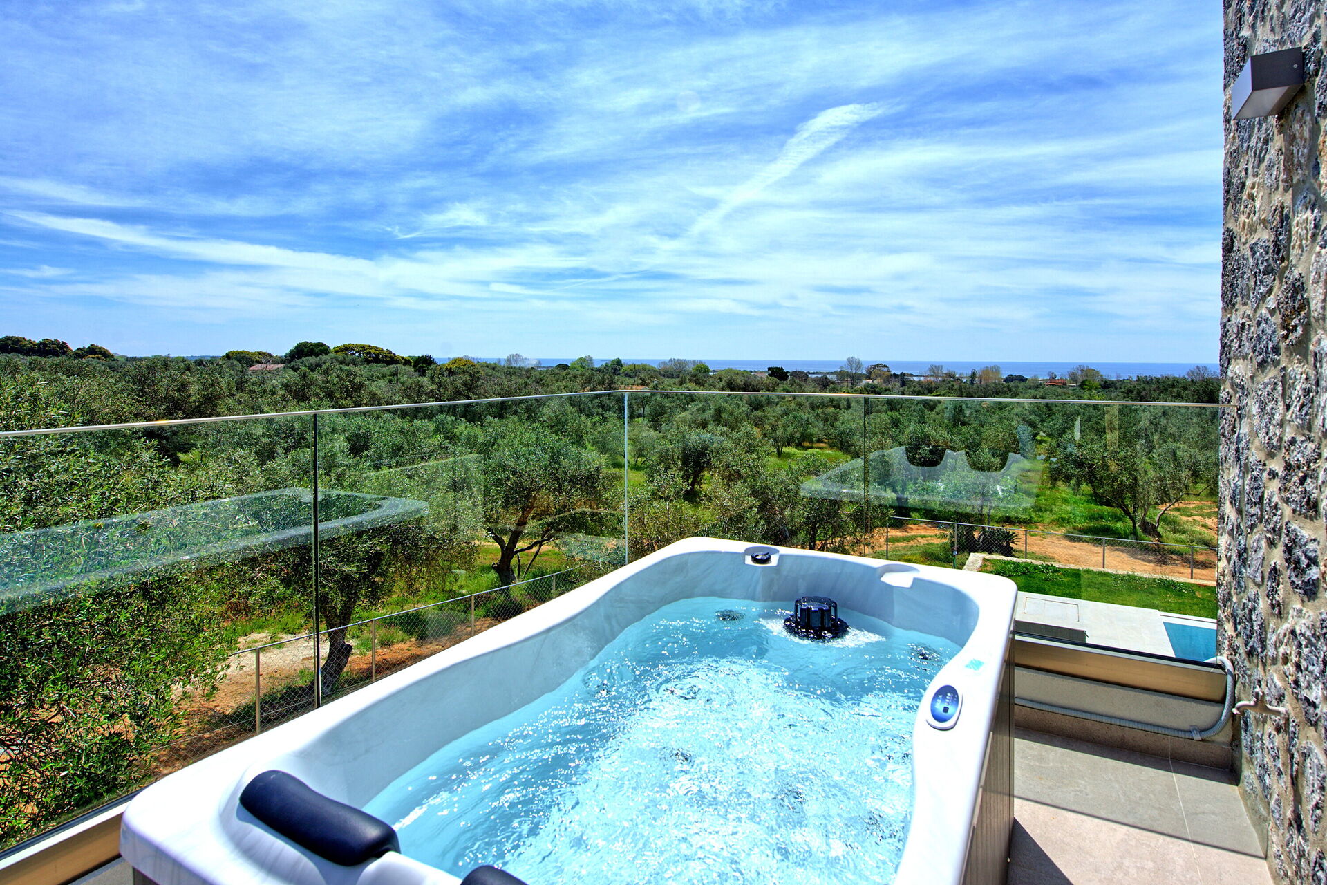 It offers a pool exclusively for guests, and an outdoor hot tub on the shared terrace on the first floor. The sea is just 1,5 km away, and the villa offers panoramic vistas of olive groves that spread as far as the eye can see.