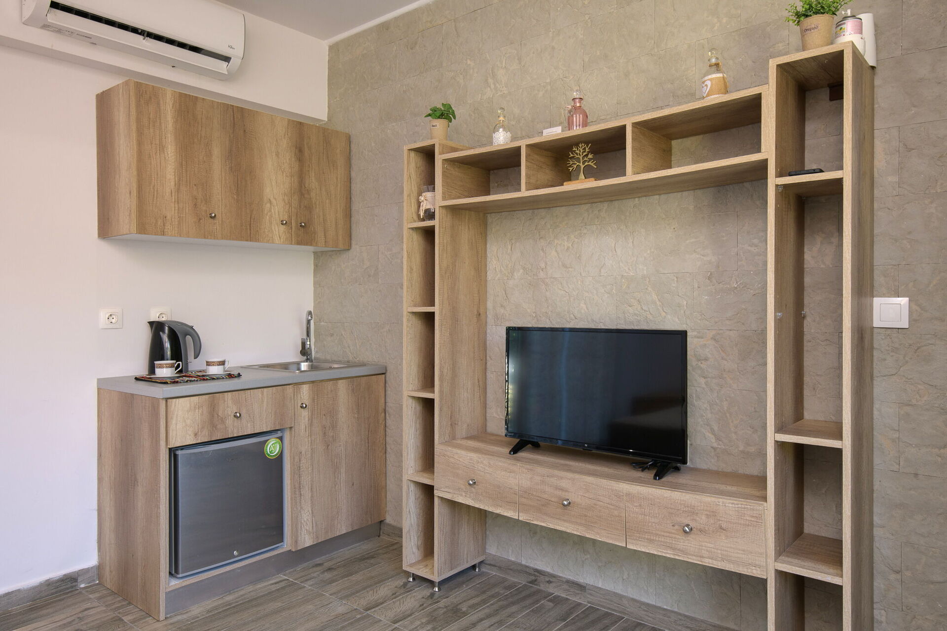 Air conditioning in the bedrooms and living room.