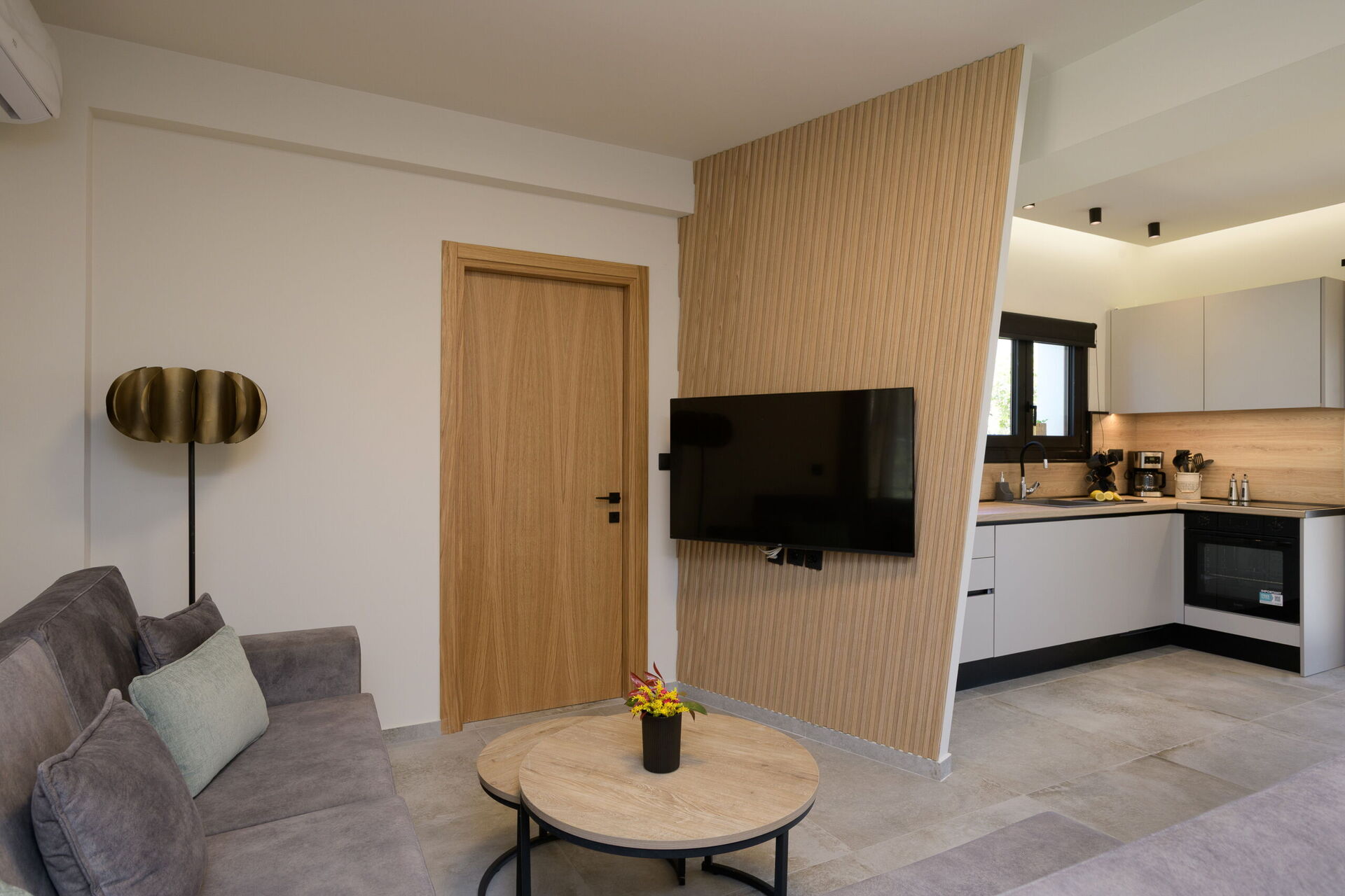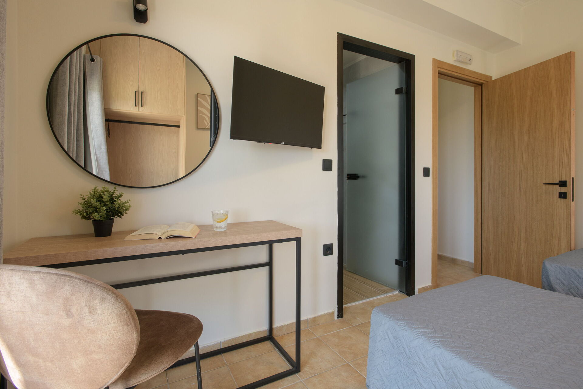 This lovely property is close to the sea and famous Chalikounas beach, an enchanting stretch of golden sand that separates Korission Lagoon from the sea and is popular with surfers and kite surfers for its wind exposure.