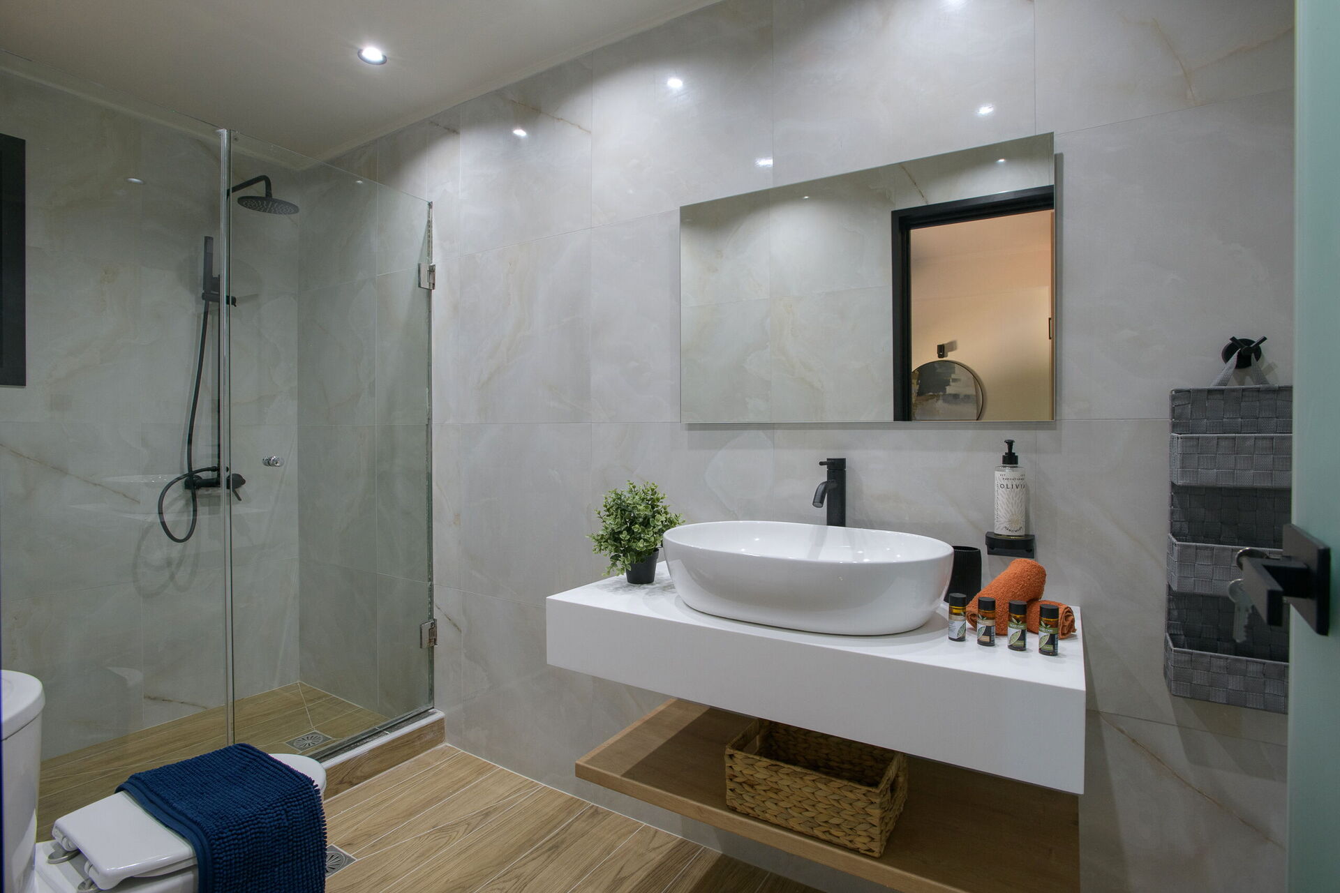 The two-level villa is very welcoming, with simple, modern interiors. It has 3 bedrooms and 3 bathrooms to comfortably accomodate up to 6 people.