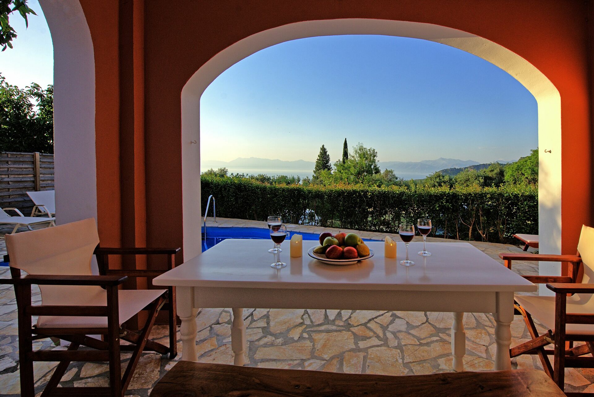 Had a wonderful stay in this villa. The views are breathtaking and we had the seclusion we were looking for. We had a car so we could explore the many bays and beaches and tavernas on the north coast of Kerkyra. The house itself was furnished in a lovely combination of antique wooden dressers and modern bathroom and kitchen utilities.