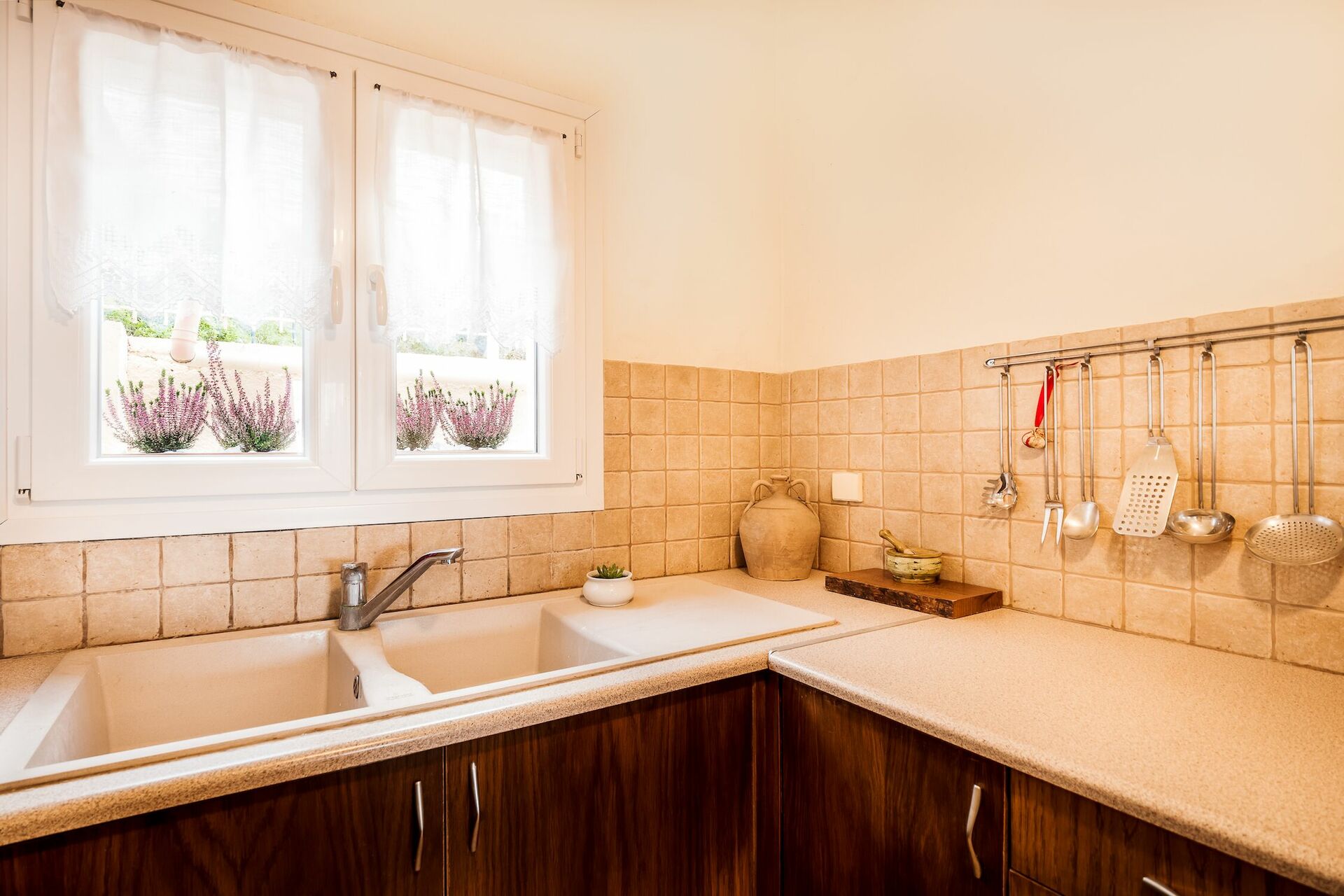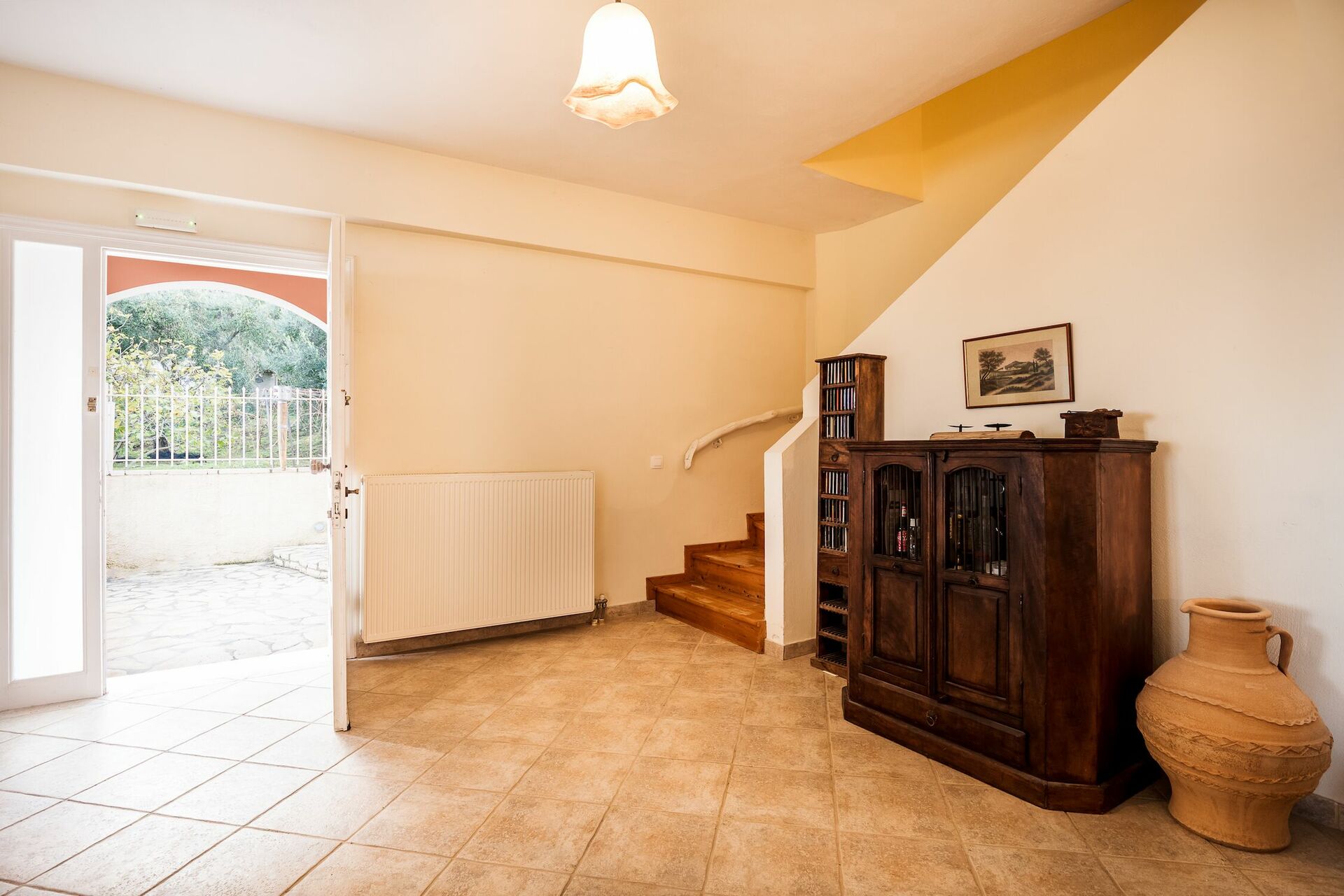 The villa is in a quiet village which can be reached by car in 15 minutes from the main road. It looks exactly like in the pictures, it’s clean and well maintained. Mrs. Evi was attentive to us and our questions.