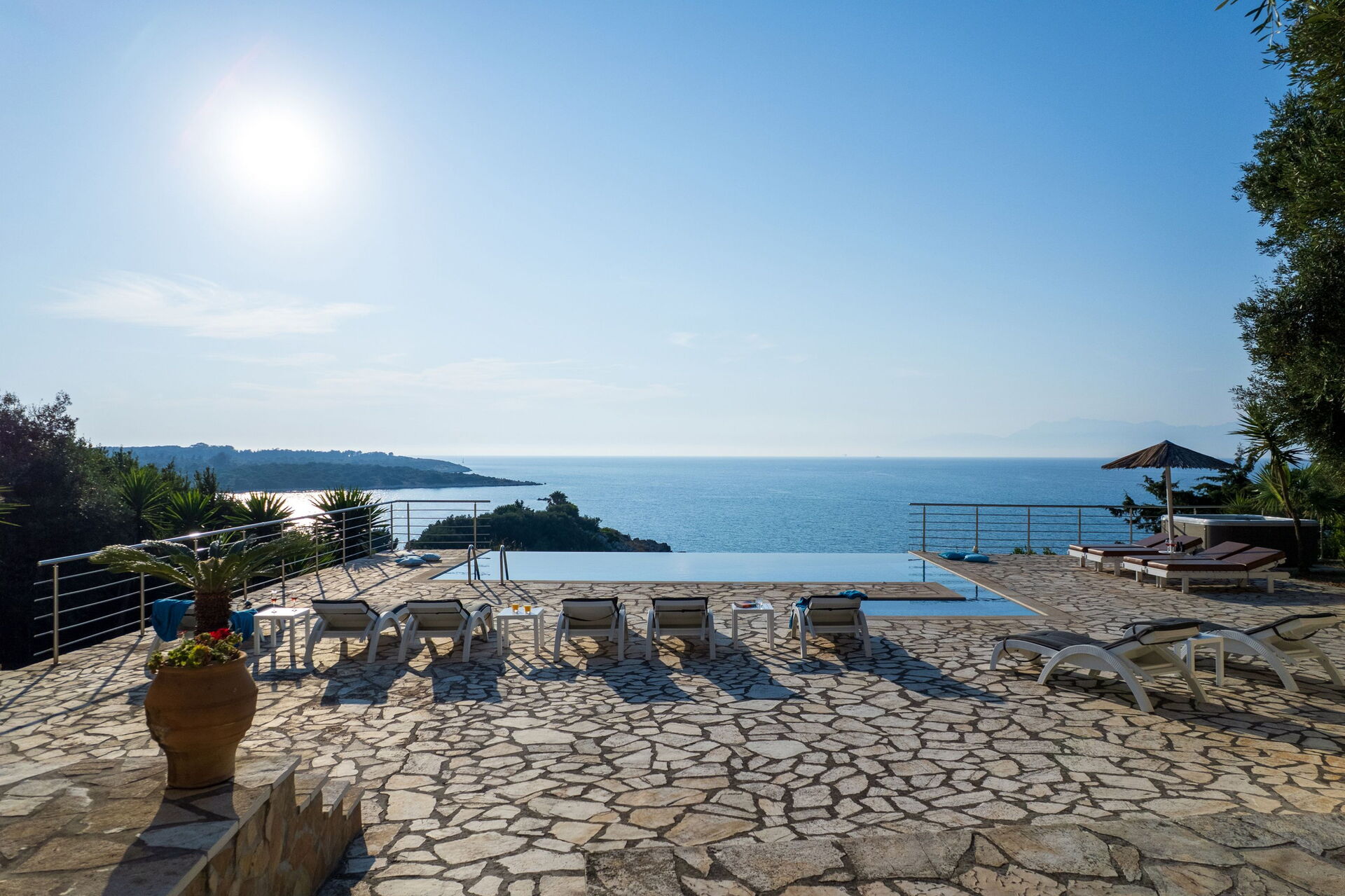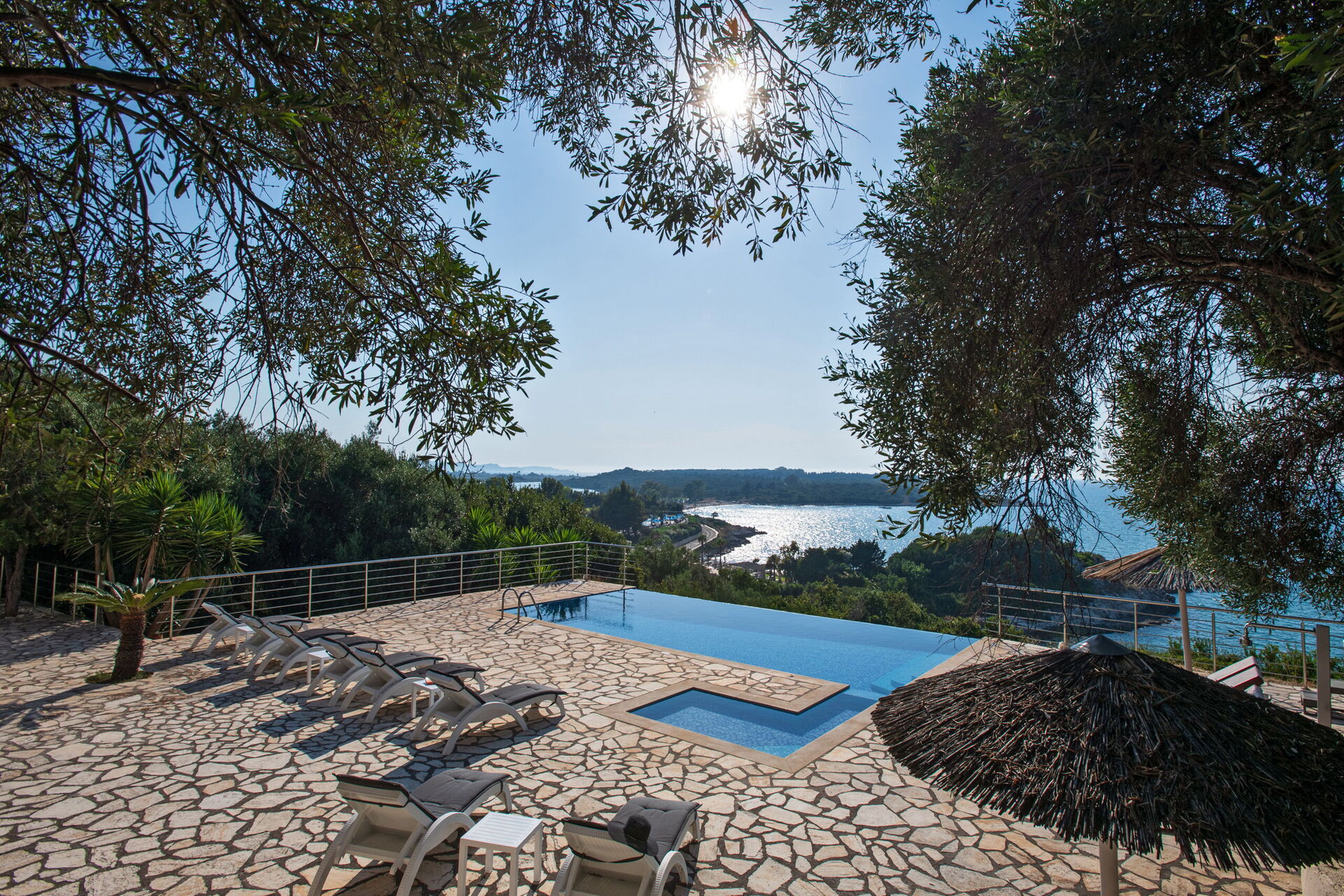 Probably one of the most unique properties on the sought after north-east coast of Corfu, Villa Seasun is an imposing vacation rental with 7 bedrooms, stylish interiors and stunning outdoor areas with private pool (heatable), outdoor Jacuzzi and amazing views.