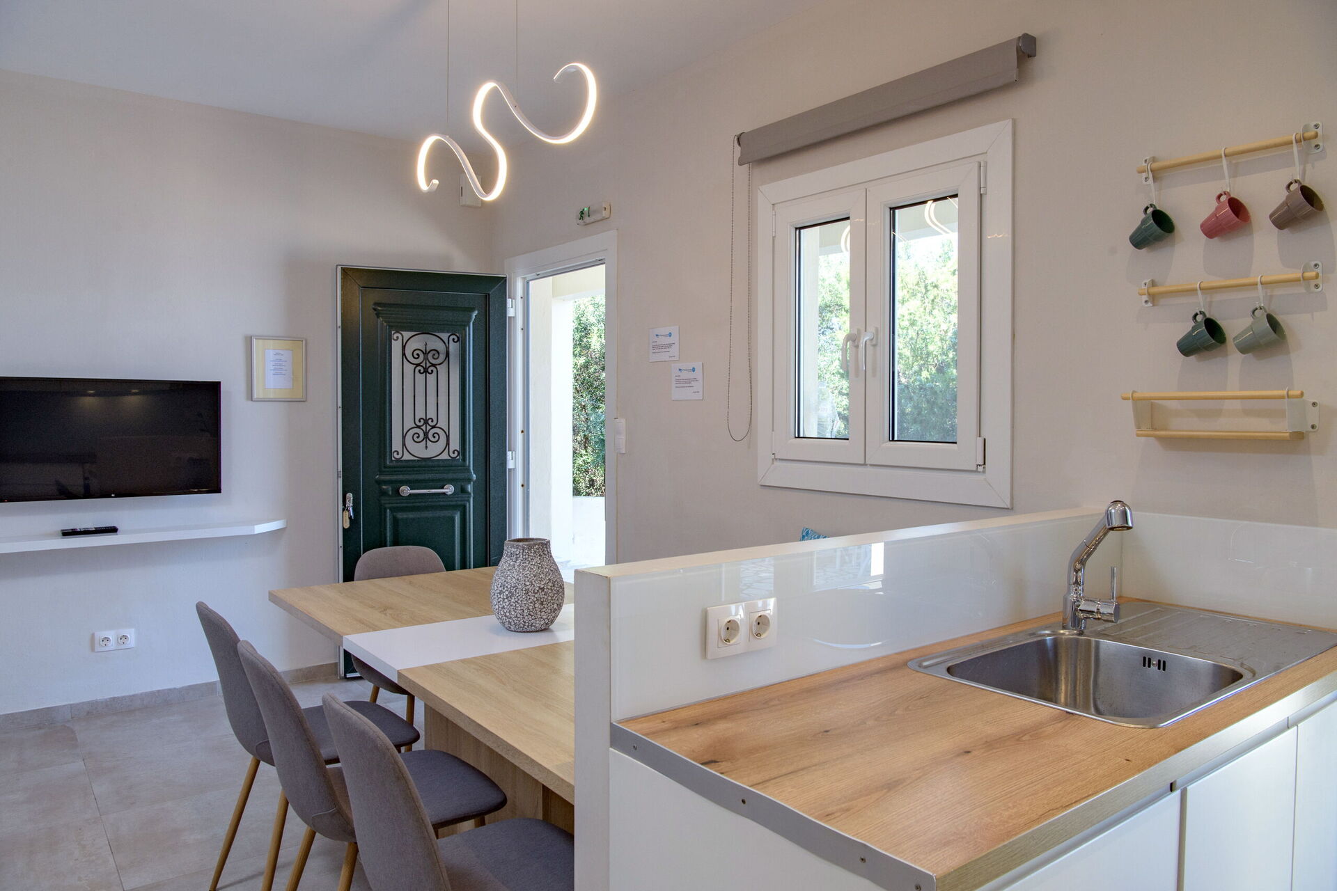 The location and vista from this villa are extraordinary. Nestled in to the side of a quintessential Greek hillside and looking out over the gorgeous Spiridon beach, you really feel that you're in the perfect place for your holiday. The outdoor space is excellent for entertaining large groups and the infinity pool really adds a a touch of luxury to the property. Inside the two apartments are well proportioned if basically furnished. The kitchen is small if you're cooking for 10+ but sufficiently stocked with a variety of odd utensils that you can muddle your way through. We loved our time at Villa Seasun, thanks for having us.