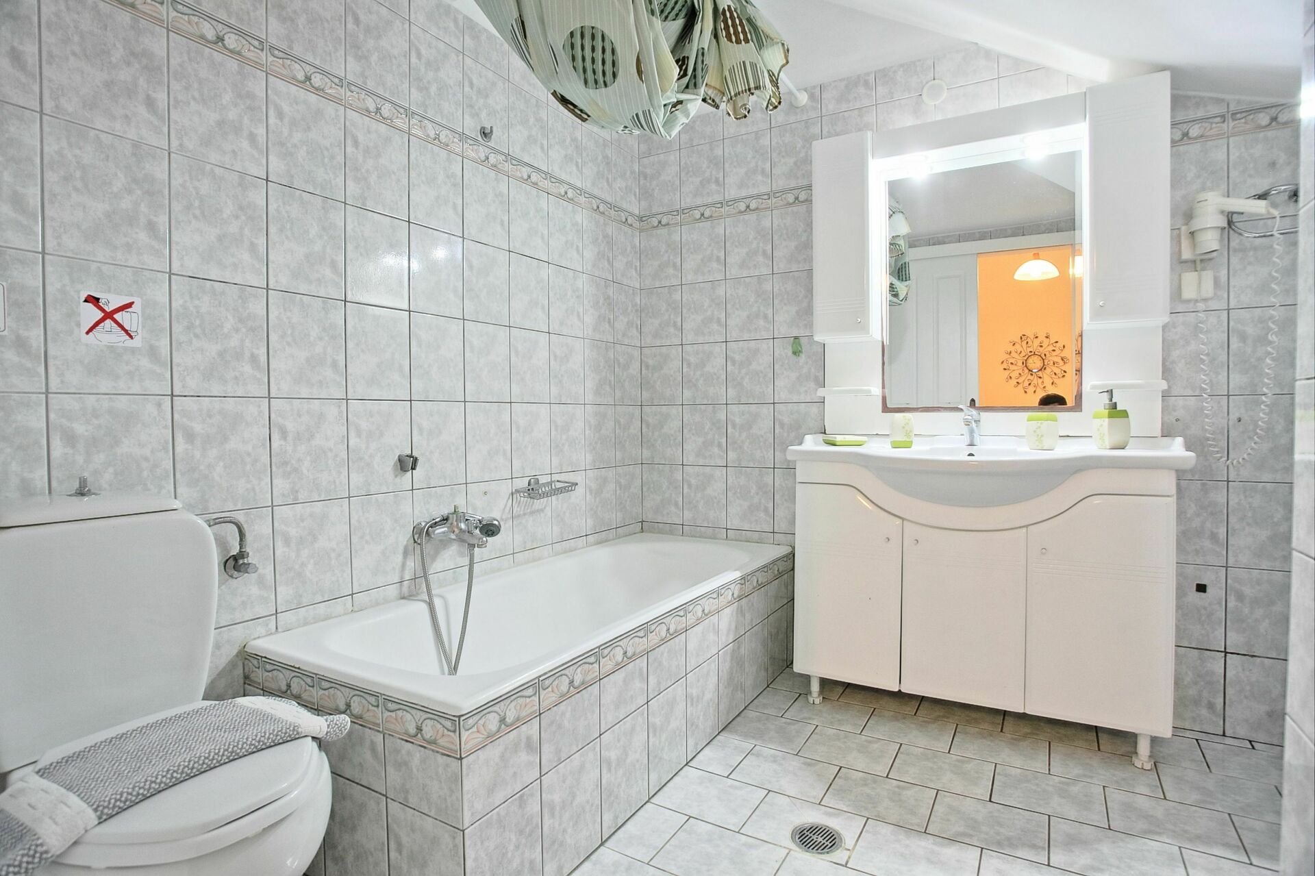 Ein großes Haus gut geeignet für Familien oder Freundes Gruppen die zusammen verreisen möchten. Der Pool ist wirklich schön und immer sauber, was toll ist, da der nächste Strand ein kleiner Kiesstrand ist. Es gibt einen hübschen Garten mit Grill und die Wohnungen sind gut ausgestattet.