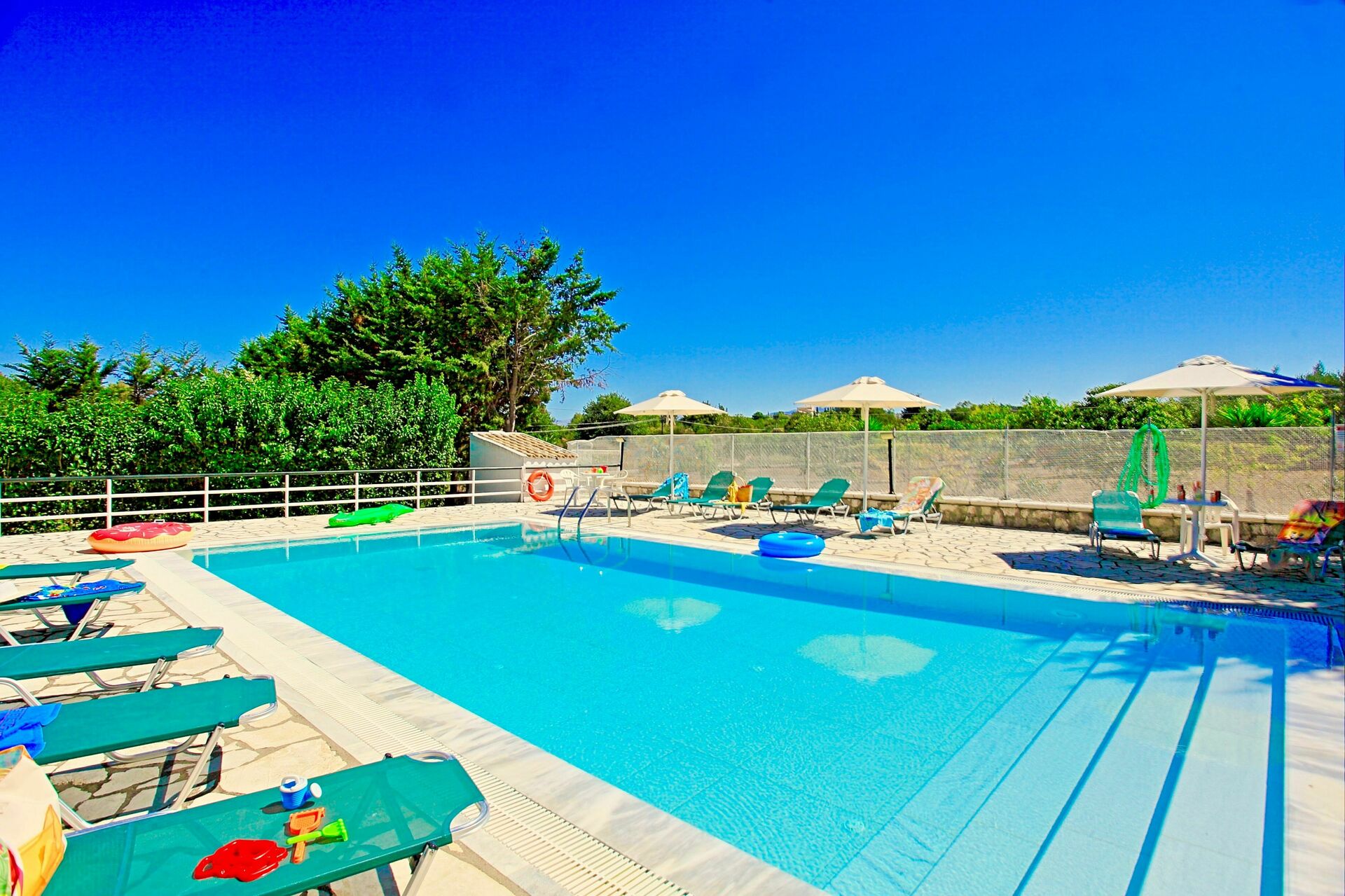 Lovely villa, pool and gardens. Walking distance of restaurants, beaches, supermarkets and Kasiopi. We had a great time.