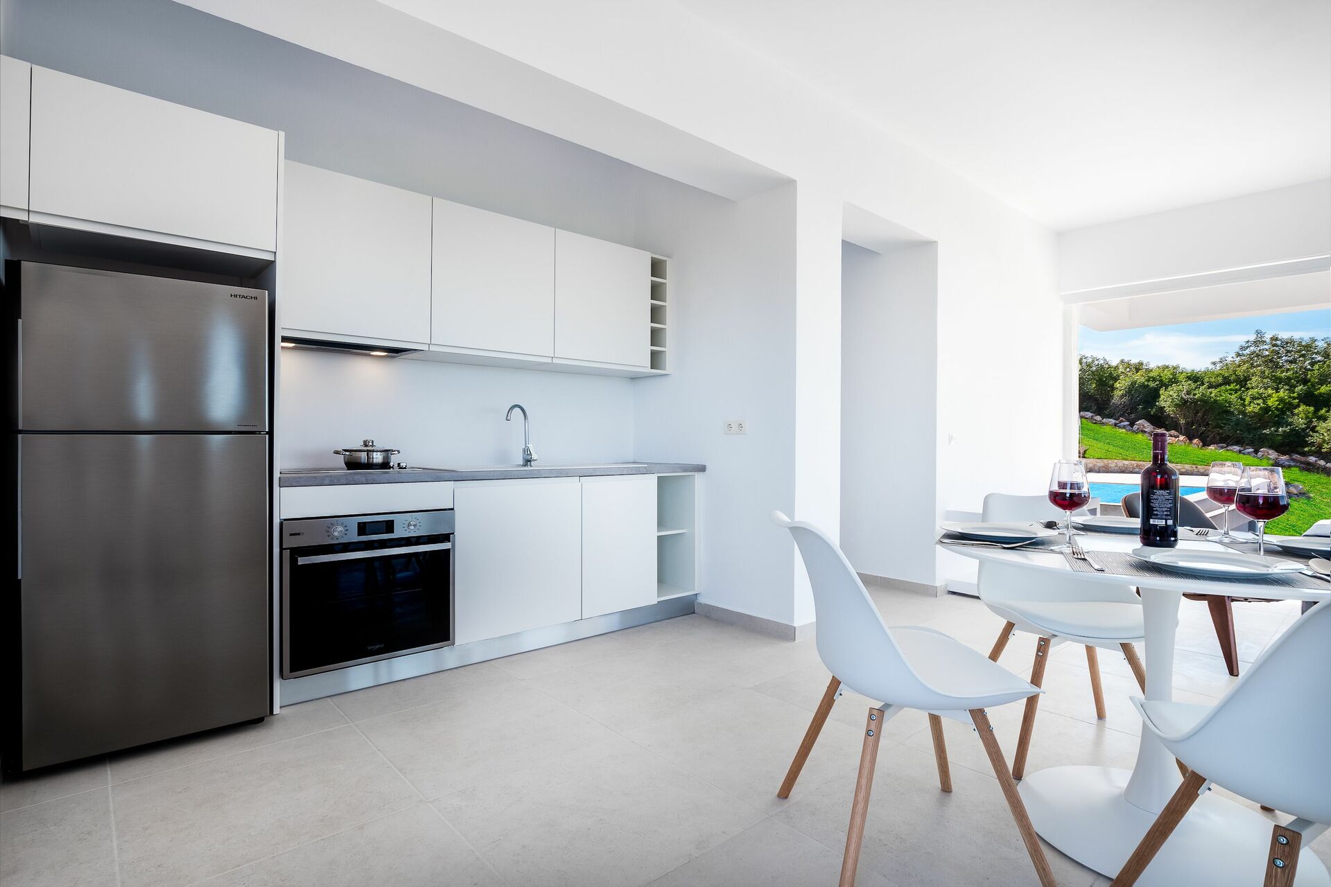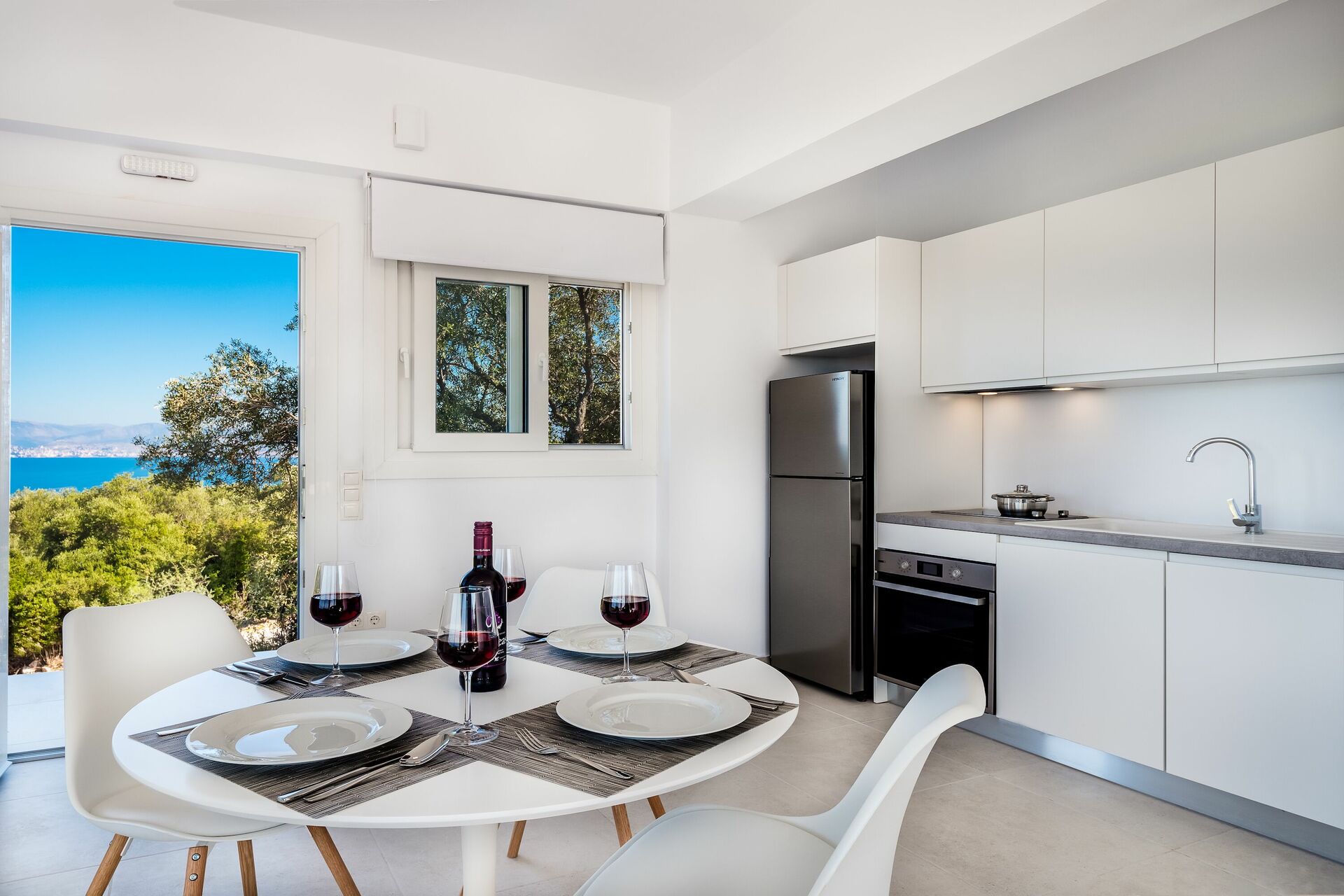 Really great place with stunning views, lovely pool and excellent air conditioning! Notes - the villas are split into two apartments which means you get two kitchens, two living rooms and two outdoor areas; great perk. The hosts left a bottle of wine on arrival which was a lovely touch. There is plenty of spare towels and bedding etc. Pros - great space for entertaining, stunning and well-maintained property, comfy beds, good showers, and good location (secluded but within 10mins walk of a few shops and restaurants) Cons - the hill up to the villas is quite steep but still perfectly manageable, getting a taxi into the closest towns can be a bit tricky at busy times (though this is true of most of Corfu) and there were quite a lot of insects when you say out at night with the lights on. In summary a fantastic place I wouldn't hesitate to recommend!