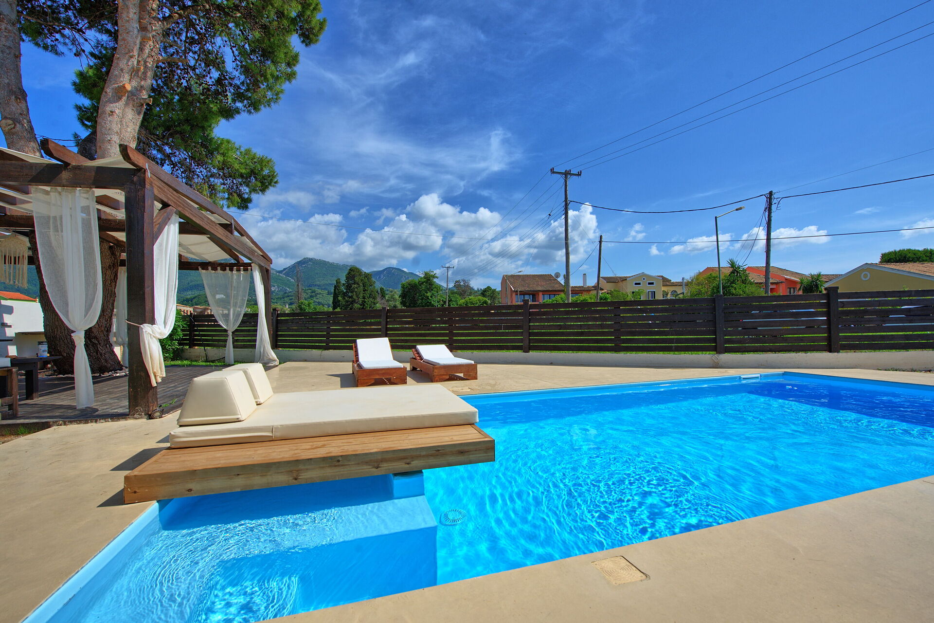 Distances: beach 190 meters away; Acharavi (shops of all kinds) 350 meters; Kassiopi 13 km; Corfu Town 40 km; airport 40 km away.