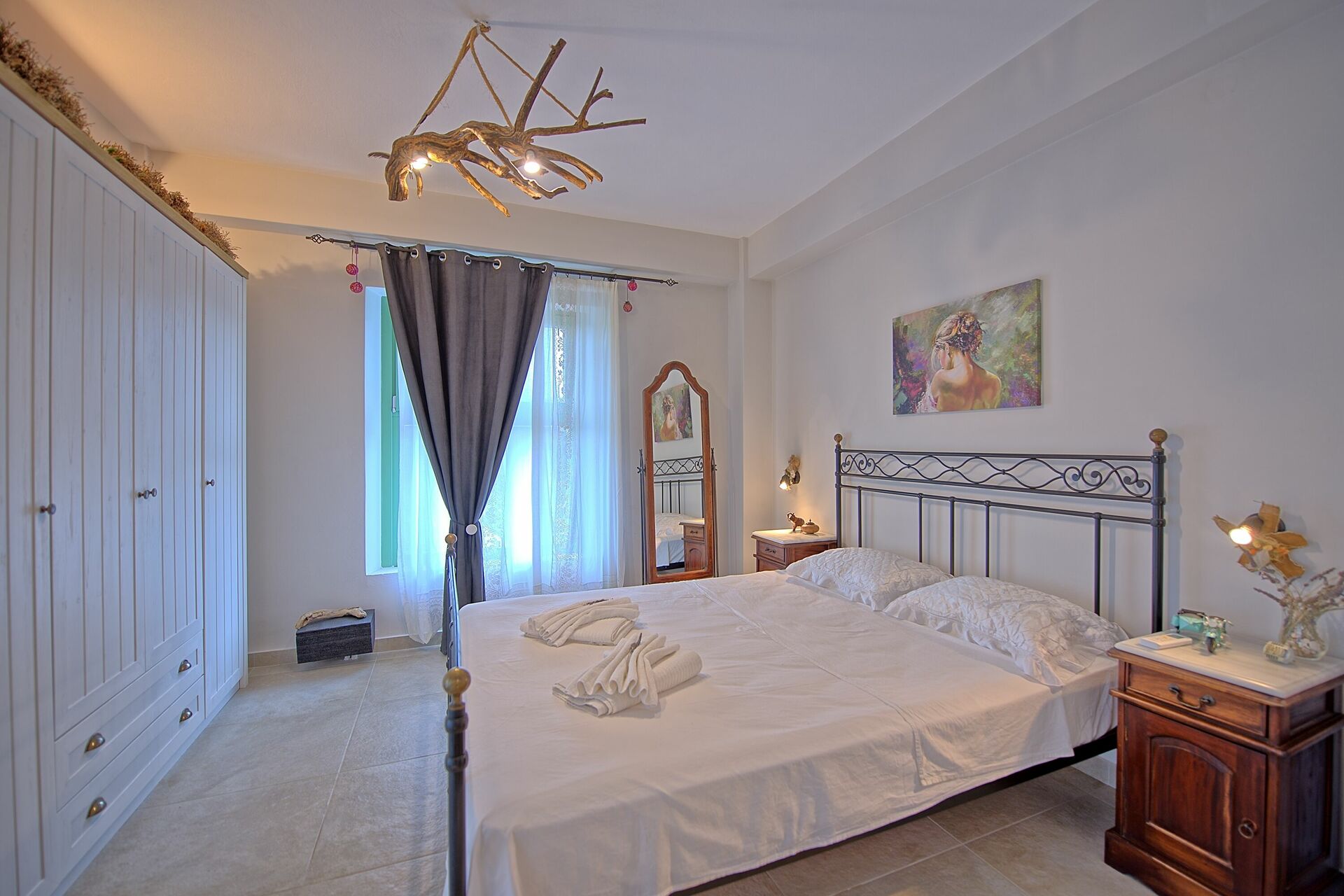 This Corfu vacation villa with 3 bedrooms can accommodate up to 6 people. It is surrounded by greenery outside, and inside its welcoming interiors are simple and tastefully furnished.