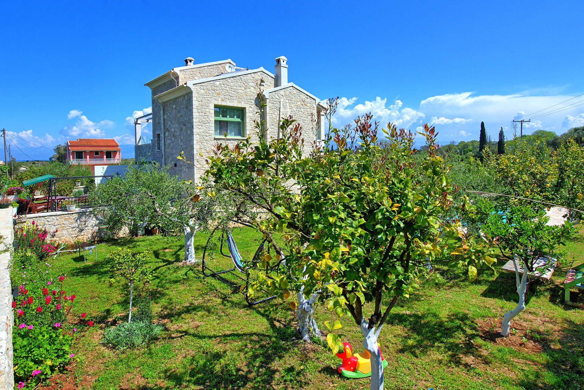 Distances: sea 1 km away, restaurant 650 meters, minimarket 600 meters, Acharavi (shops of all kinds) 3 km, Kassiopi 11 km, Agios Stefanos 16 km, Corfu Town (airport) 40 km away.