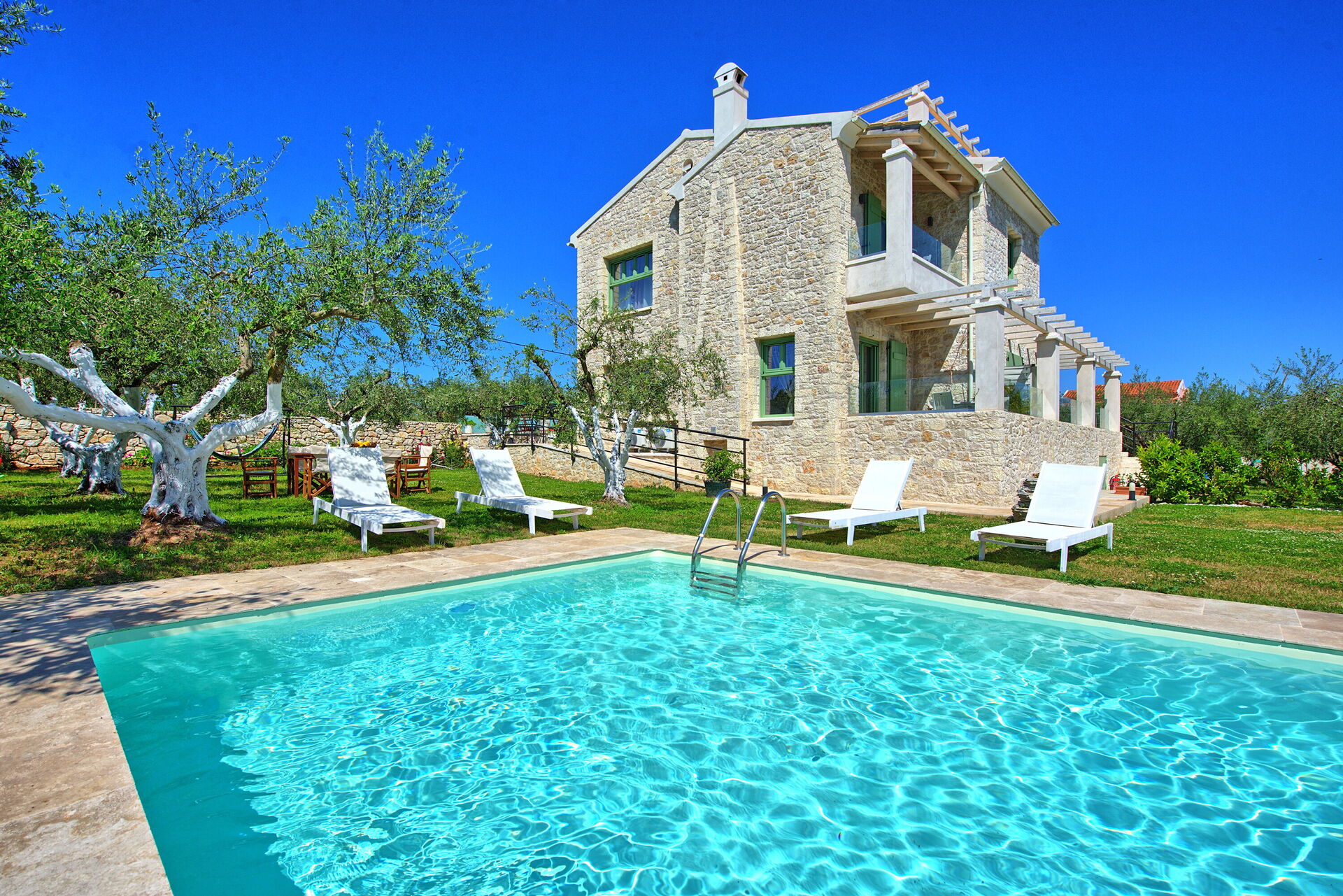Villa Elaia is a brand-new vacation villa with private pool just 1 km from Almyros beach, on Corfu.