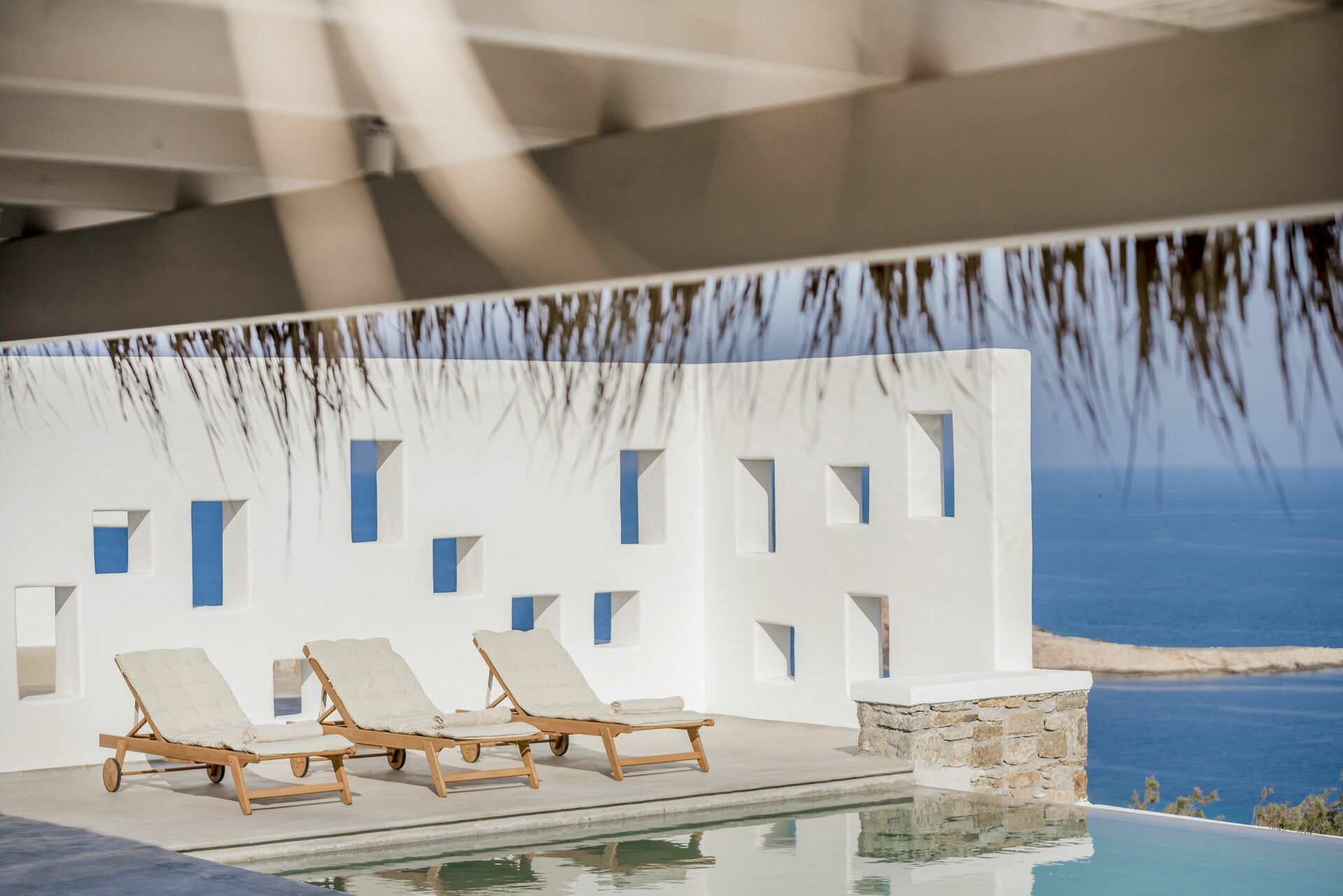 Horizon Blue is a fantastic villa with private pool on Mykonos, located in an exclusive, private location on a hill above Agios Sostis beach.