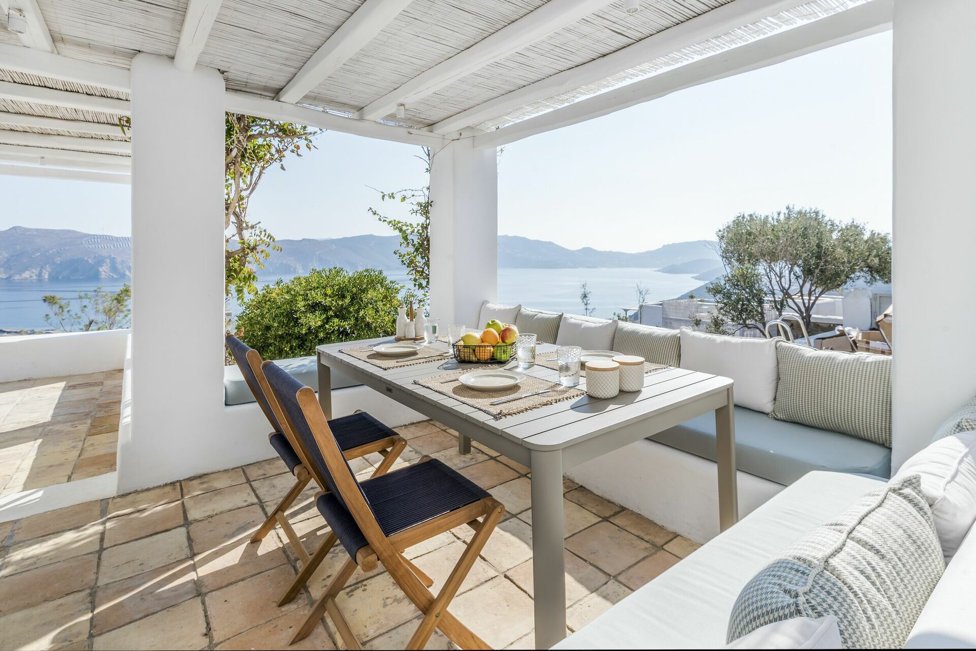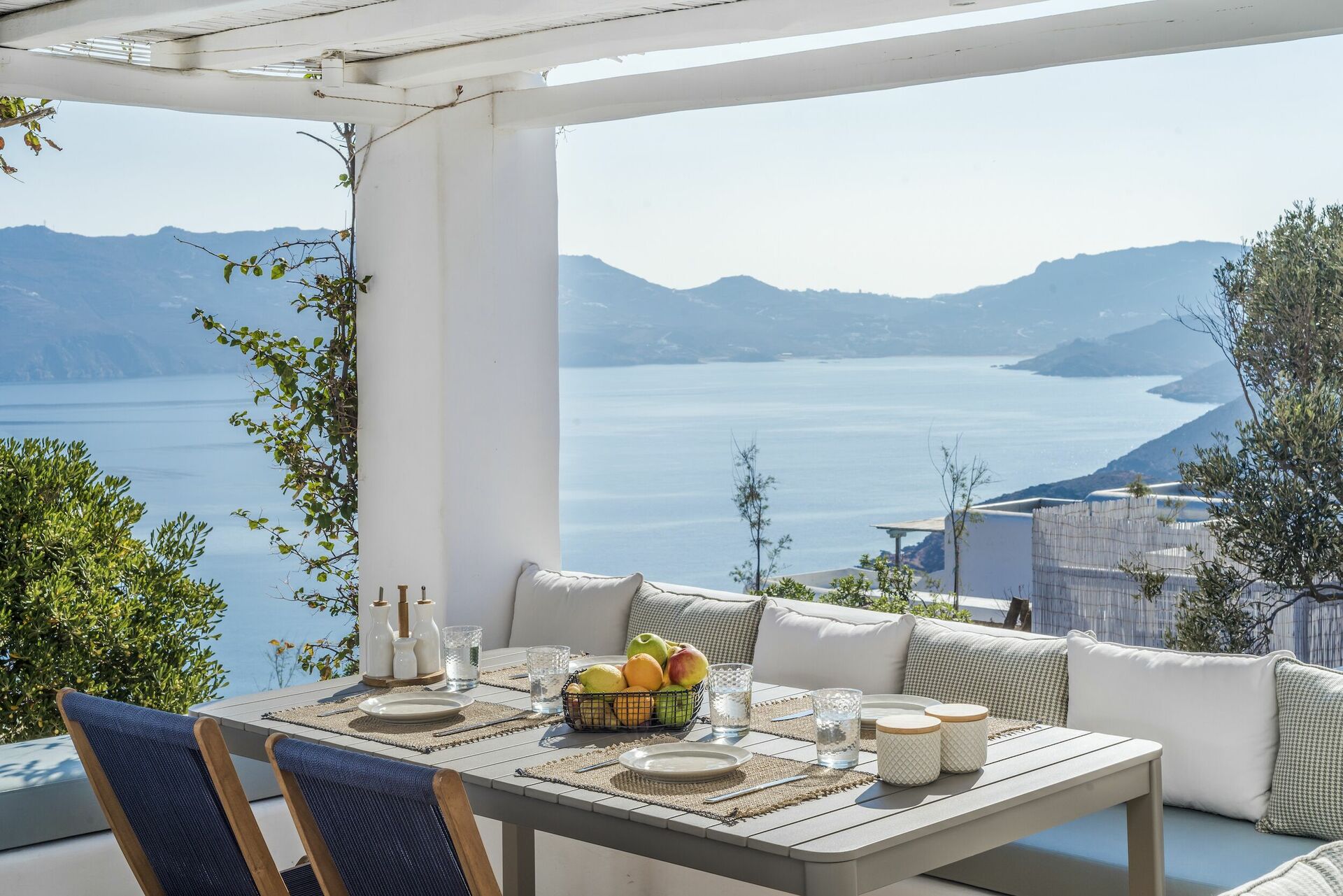 The villa offers marvelous views of Panormos Bay and Agios Sostis beach, which is just 2 minutes away by car.
