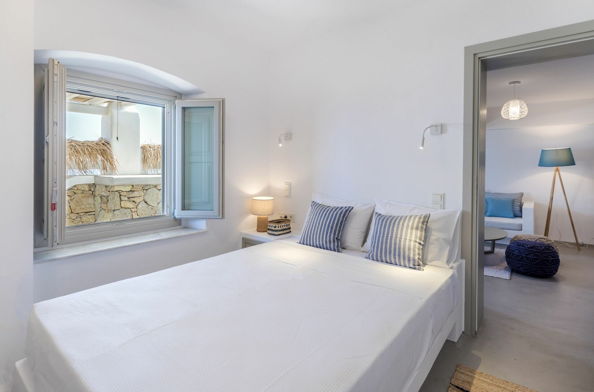 Distances: the marvelous, tranquil beaches of Agios Sostis and Panormos are just steps away, the city of Mykonos and the picturesque village of Ano Mera are both just 12 minutes away by car.
