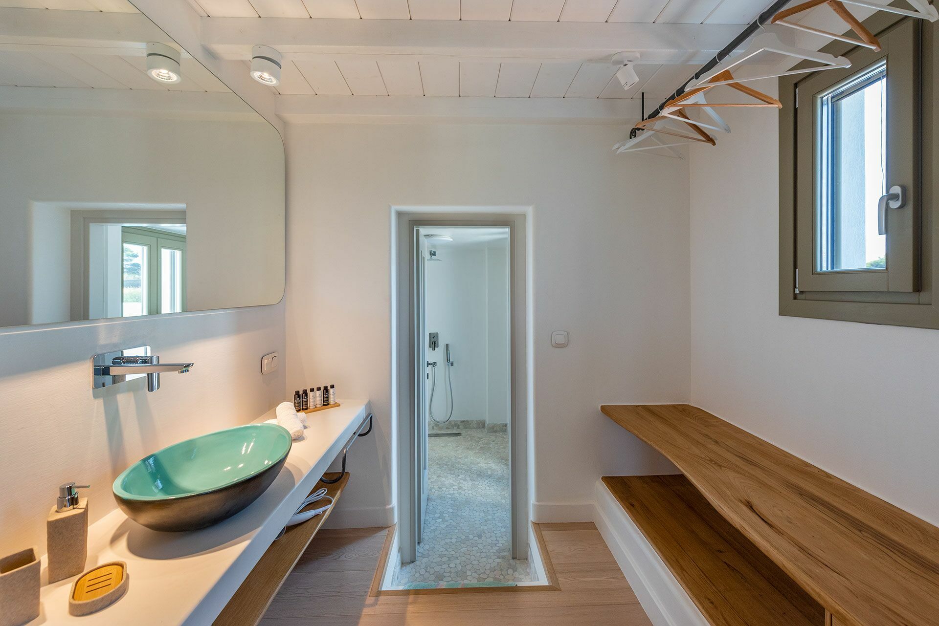 Distances: city of Skopelos (harbor, shops of all kinds) 4 km away, Limnonari beach 6 km, Panormos beach 8.5 km, Stafilos beach 9 km, Milia beach 11 km, Agios Ioannis (the church in “Mamma Mia!” perched on a cliff above the sea) 20 km away.