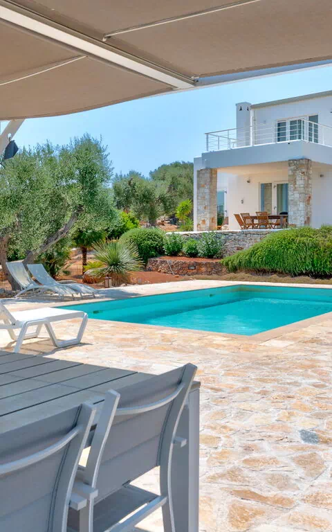 The large, fenced-in garden has centuries-old olive trees and Mediterranean shrub vegetation. At the center of the garden sits a beautiful pool exclusively for guests. You can enjoy fresh air throughout the entire day, thanks to the veranda by the villa, the pergola by the pool, and the outdoor dining and relaxation areas.