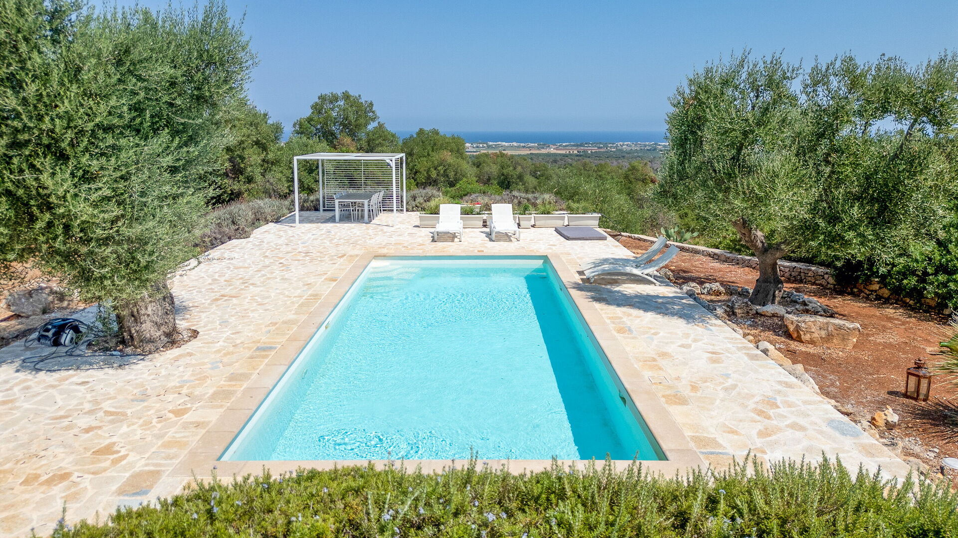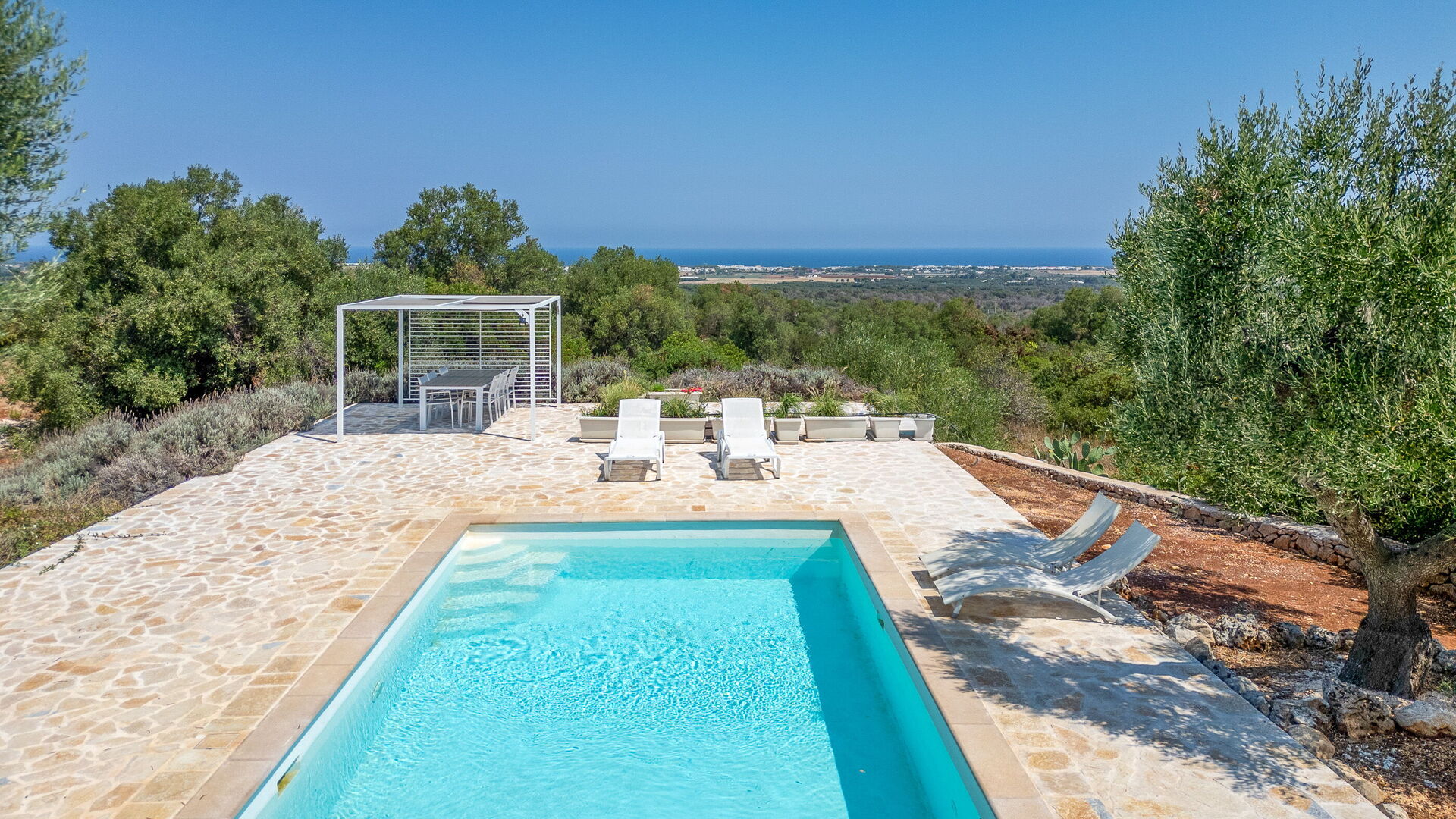 Villa Butterfly is a marvelous vacation villa rental with a pool and fantastic sea views in Apulia near Carovigno.