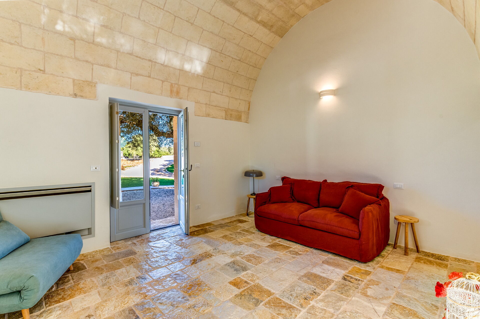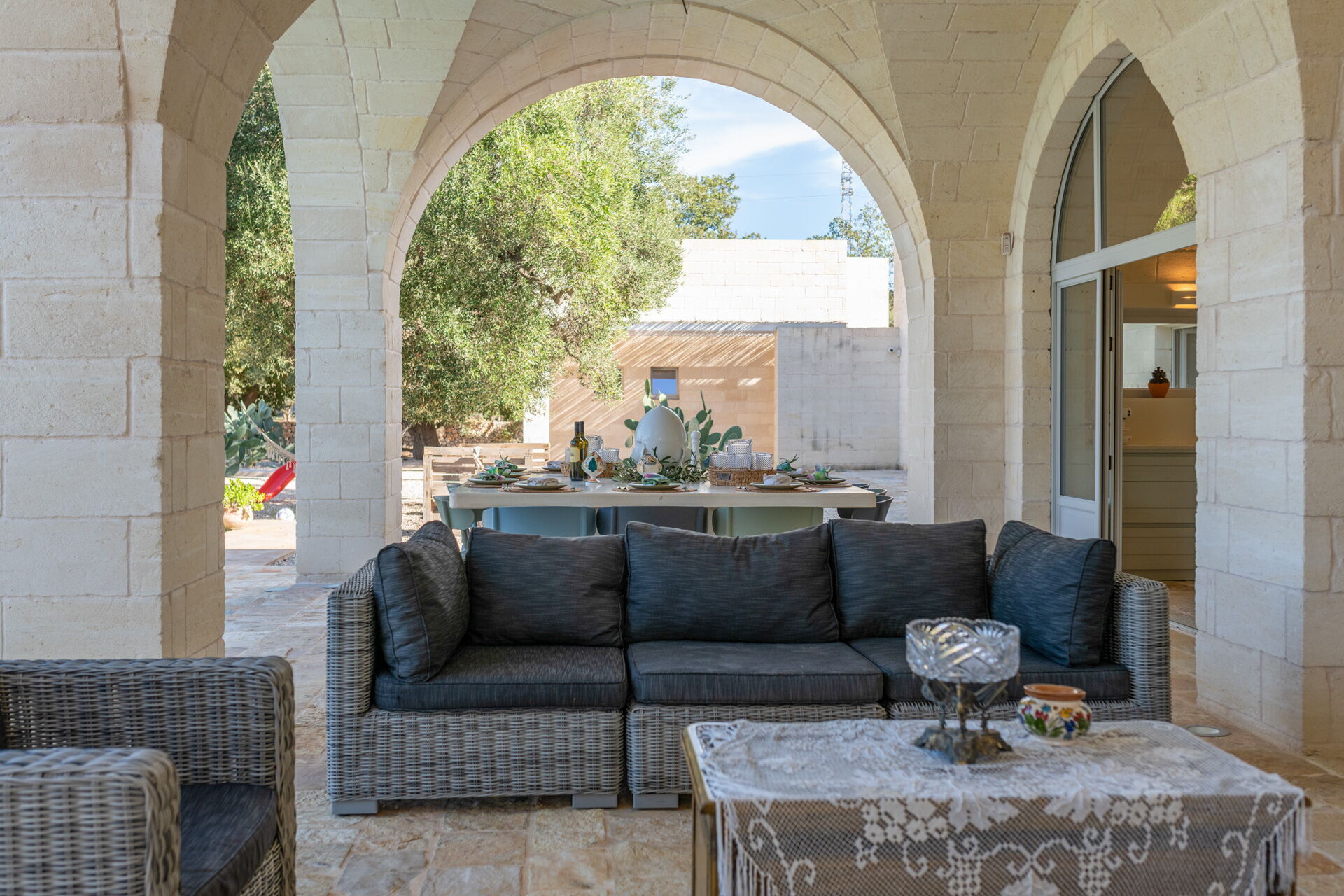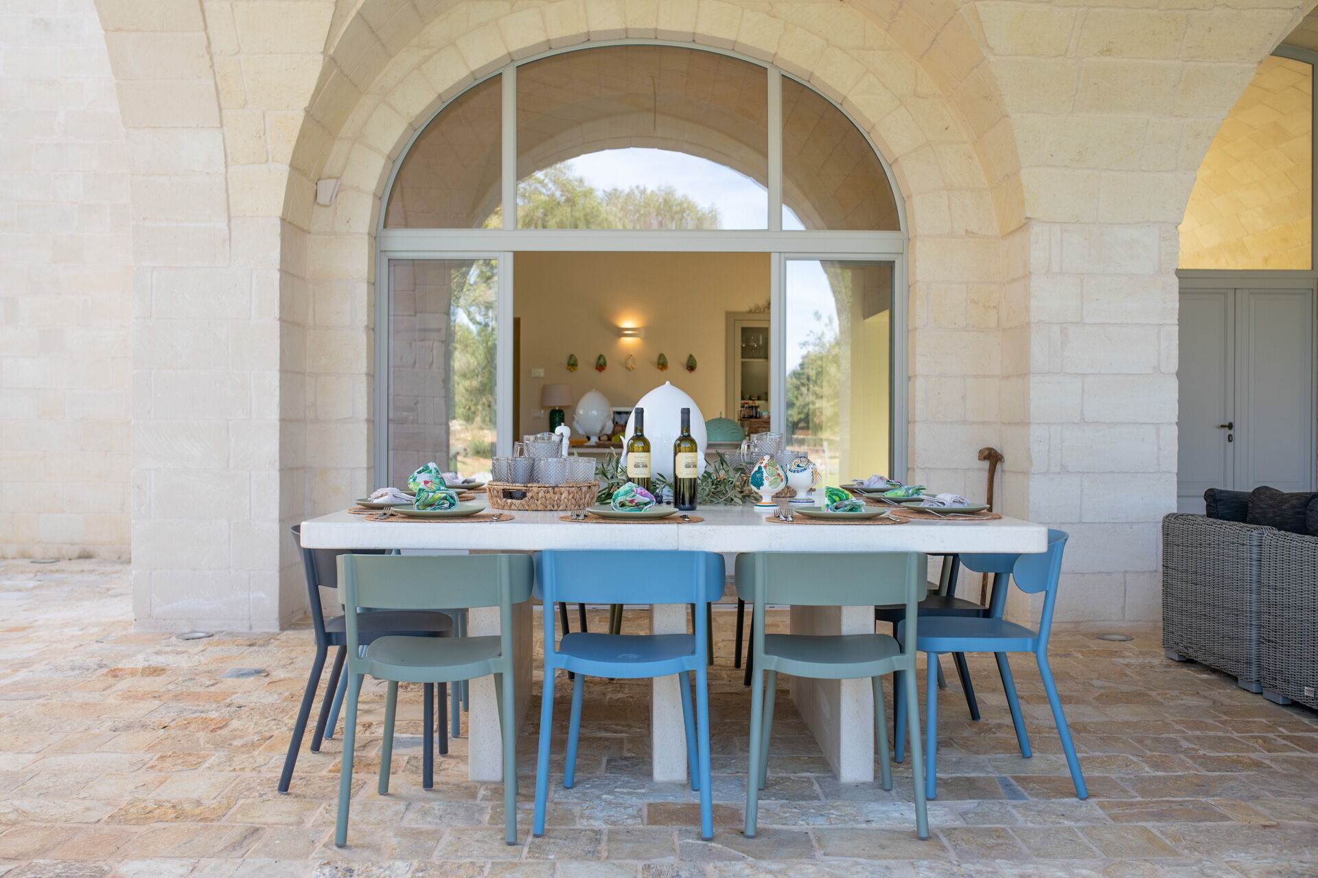 The distinguishing indoor features of this marvelous villa are its fine furnishings and light from large windows, which work perfectly with the traditional Salento architecture (vaulted ceilings, exposed stonework and white walls).