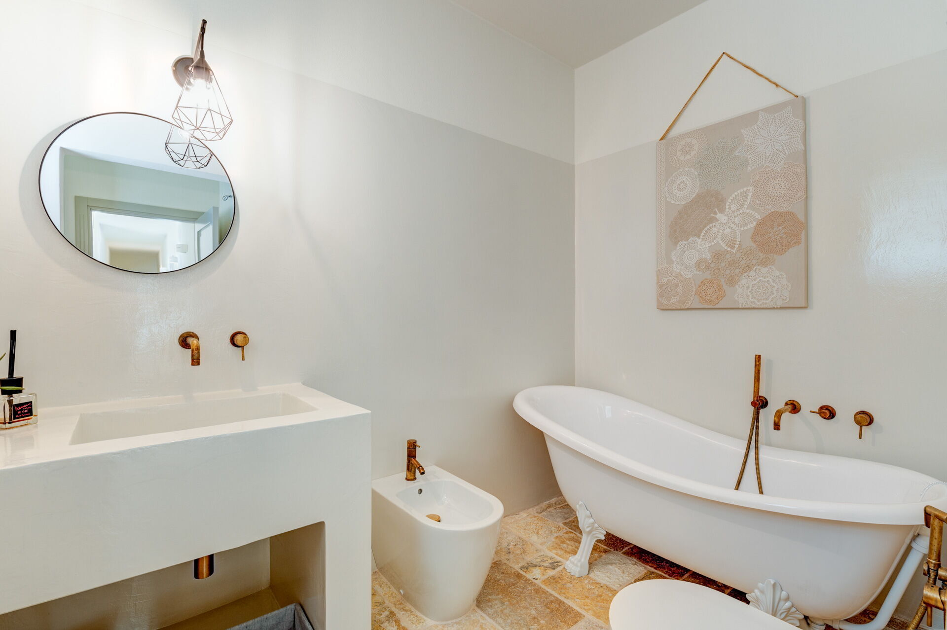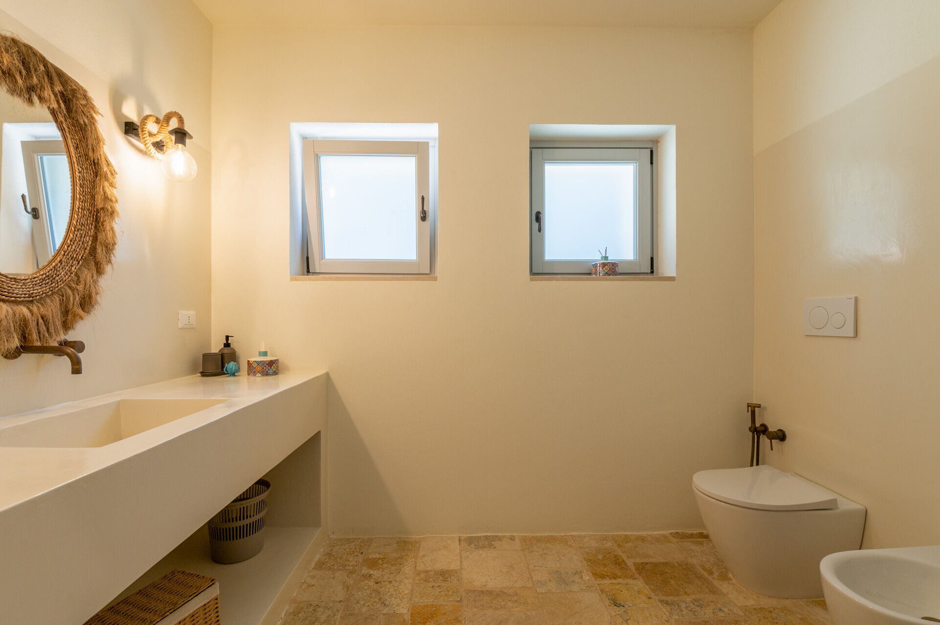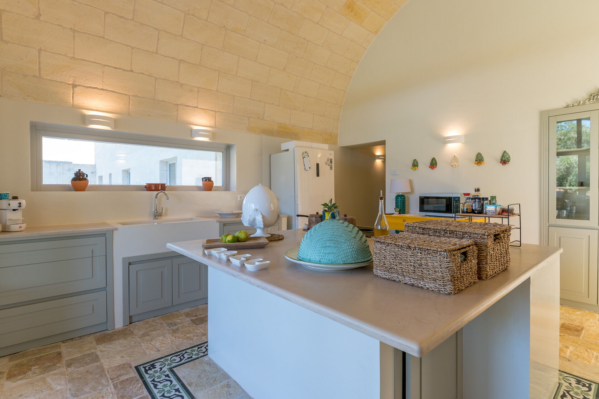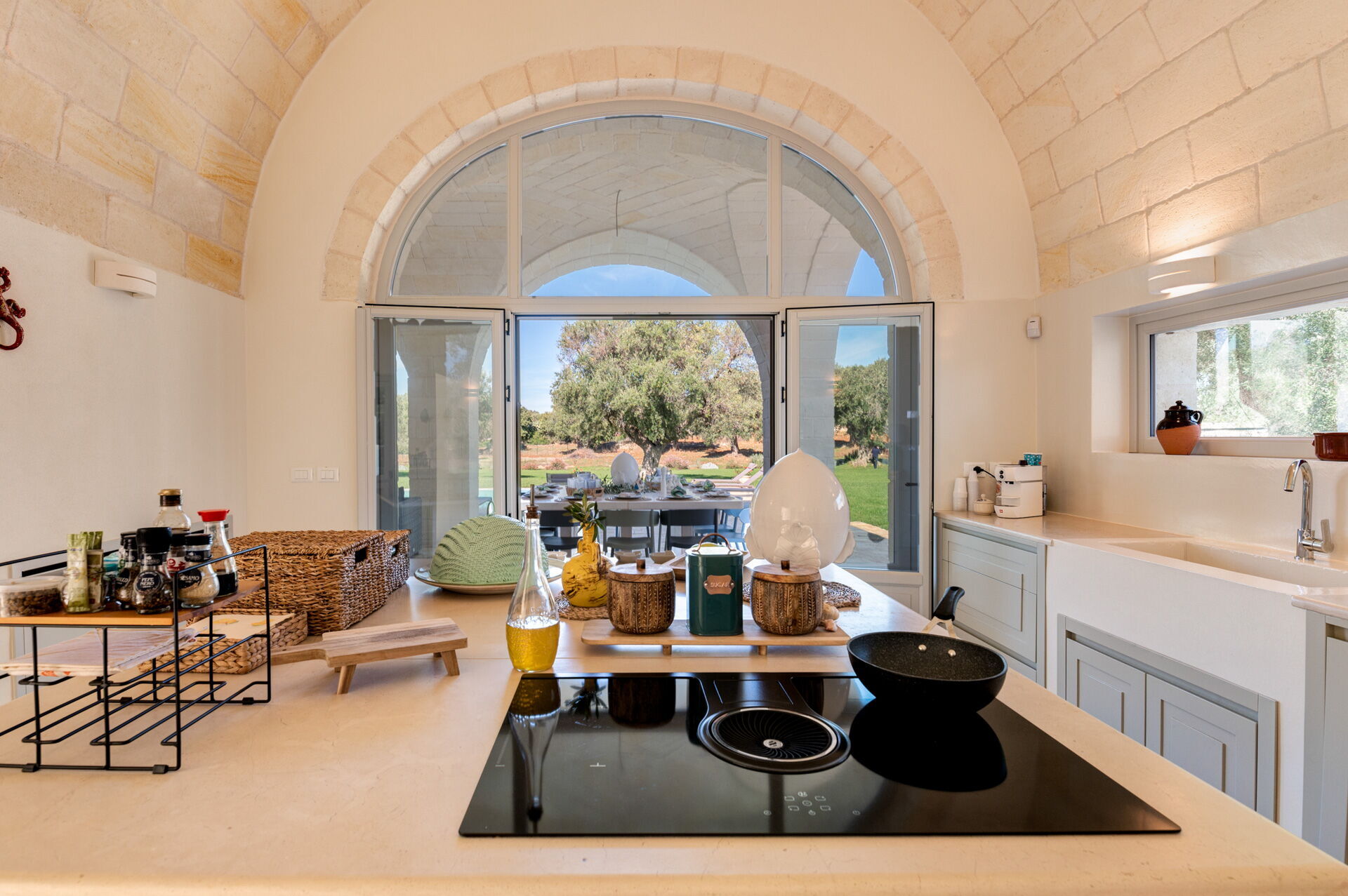 The distinguishing indoor features of this marvelous villa are its fine furnishings and light from large windows, which work perfectly with the traditional Salento architecture (vaulted ceilings, exposed stonework and white walls).