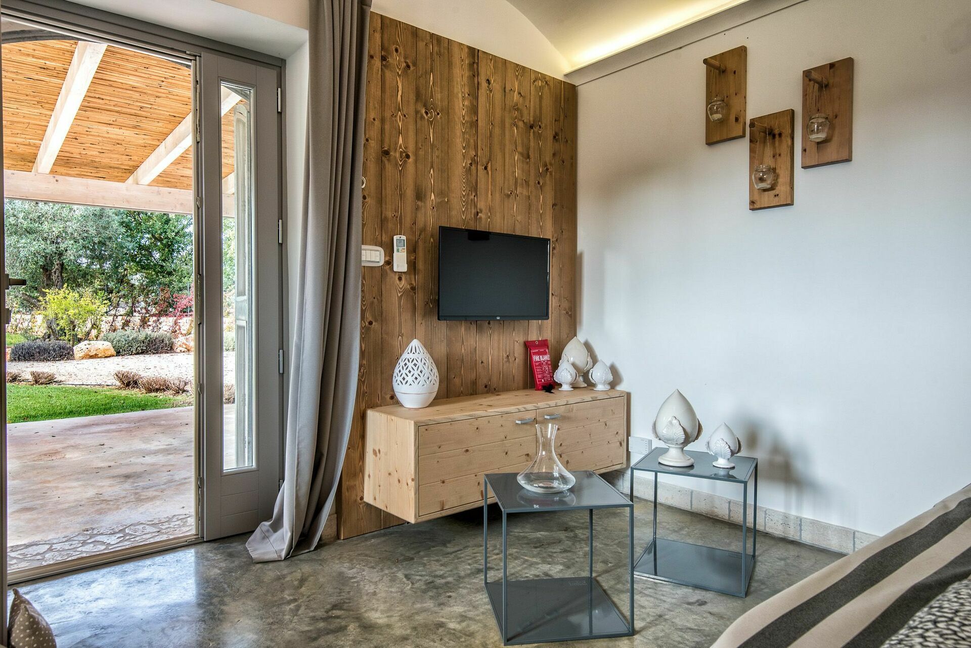 The well-tended outdoor spaces are perfect for relaxing in the fresh air: guests have a barbecue and wood burning oven where they can cook local produce from the nearby organic vegetable garden.