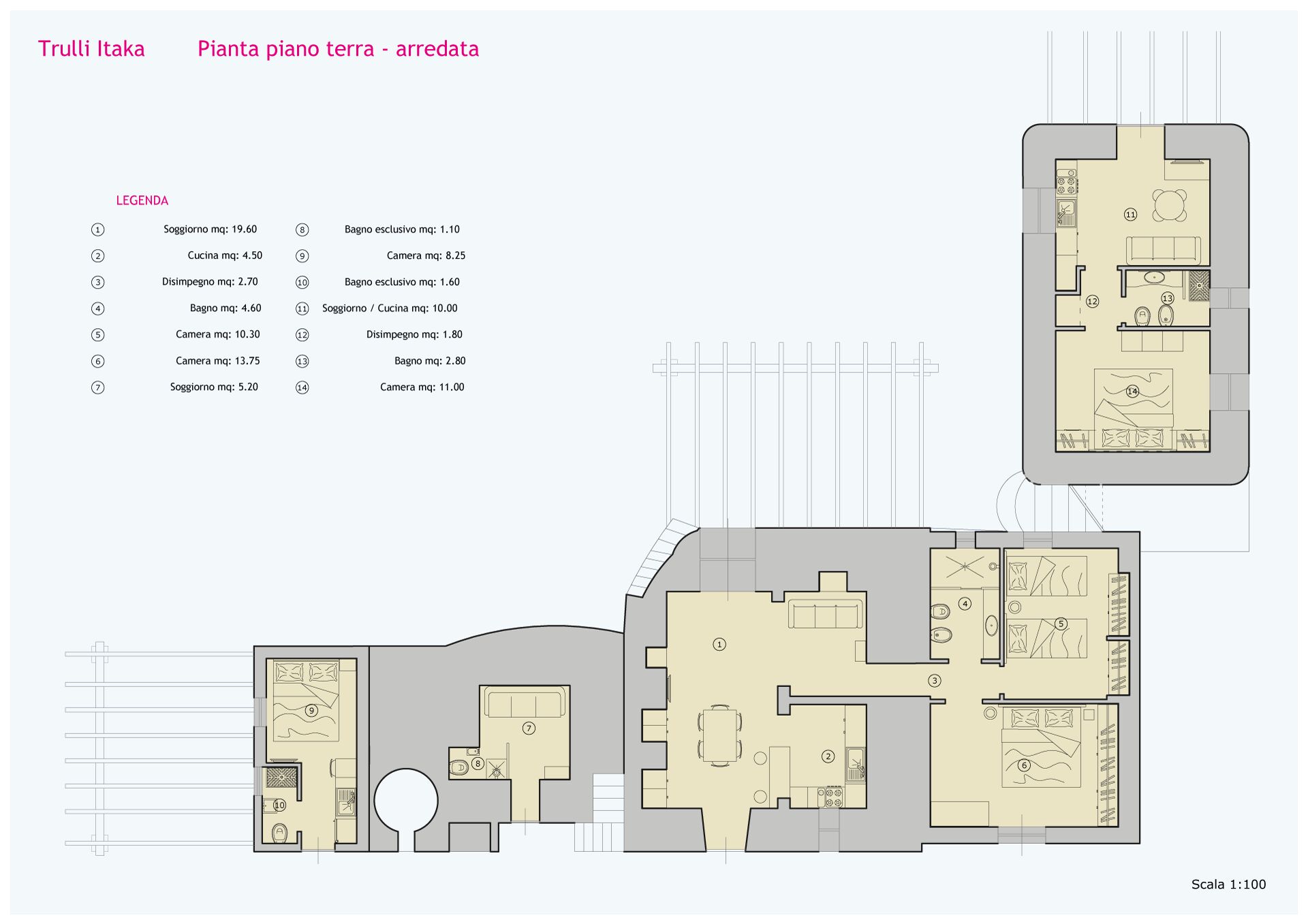 Trulli Itaka is a property made up of 3 units, each with independent access, that are not connected inside: there are a total of 4 bedrooms, and guests can enjoy having privacy without sacrificing camaraderie.