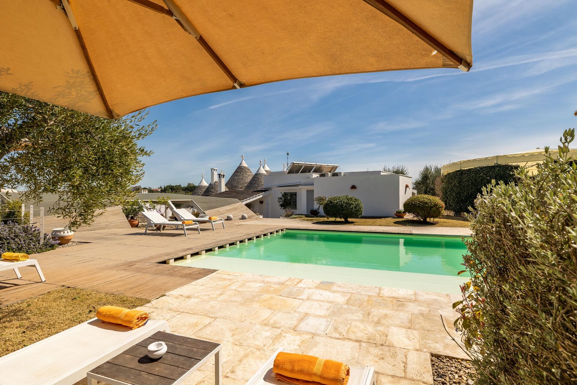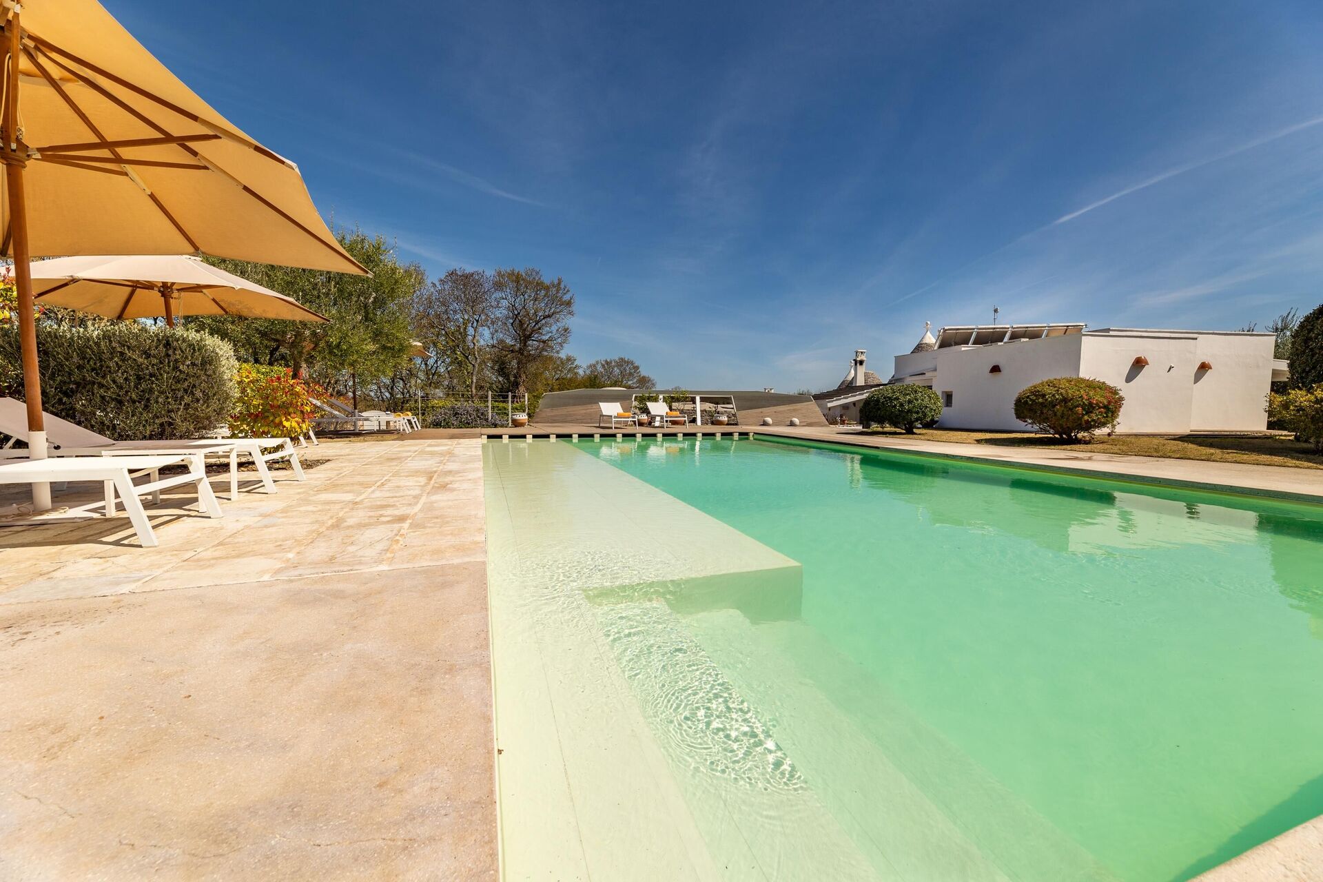 The marvelous villa rental is the perfect mix of traditional and modern styles. With 5 bedrooms, it can accommodate up to 10 people. It is made up of two separate units (a trullo and a lamia), and is ideal for a vacation with friends or relatives.
