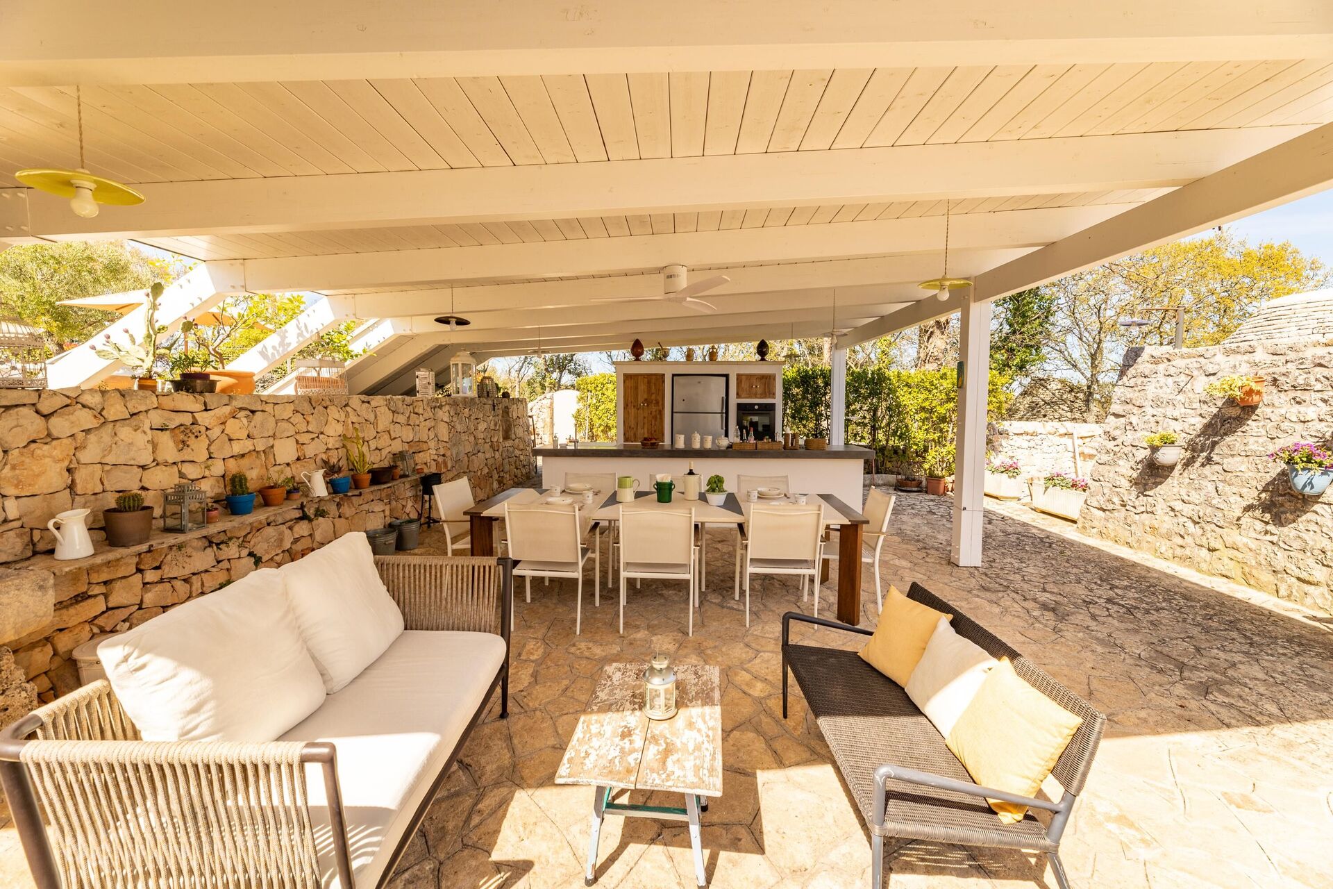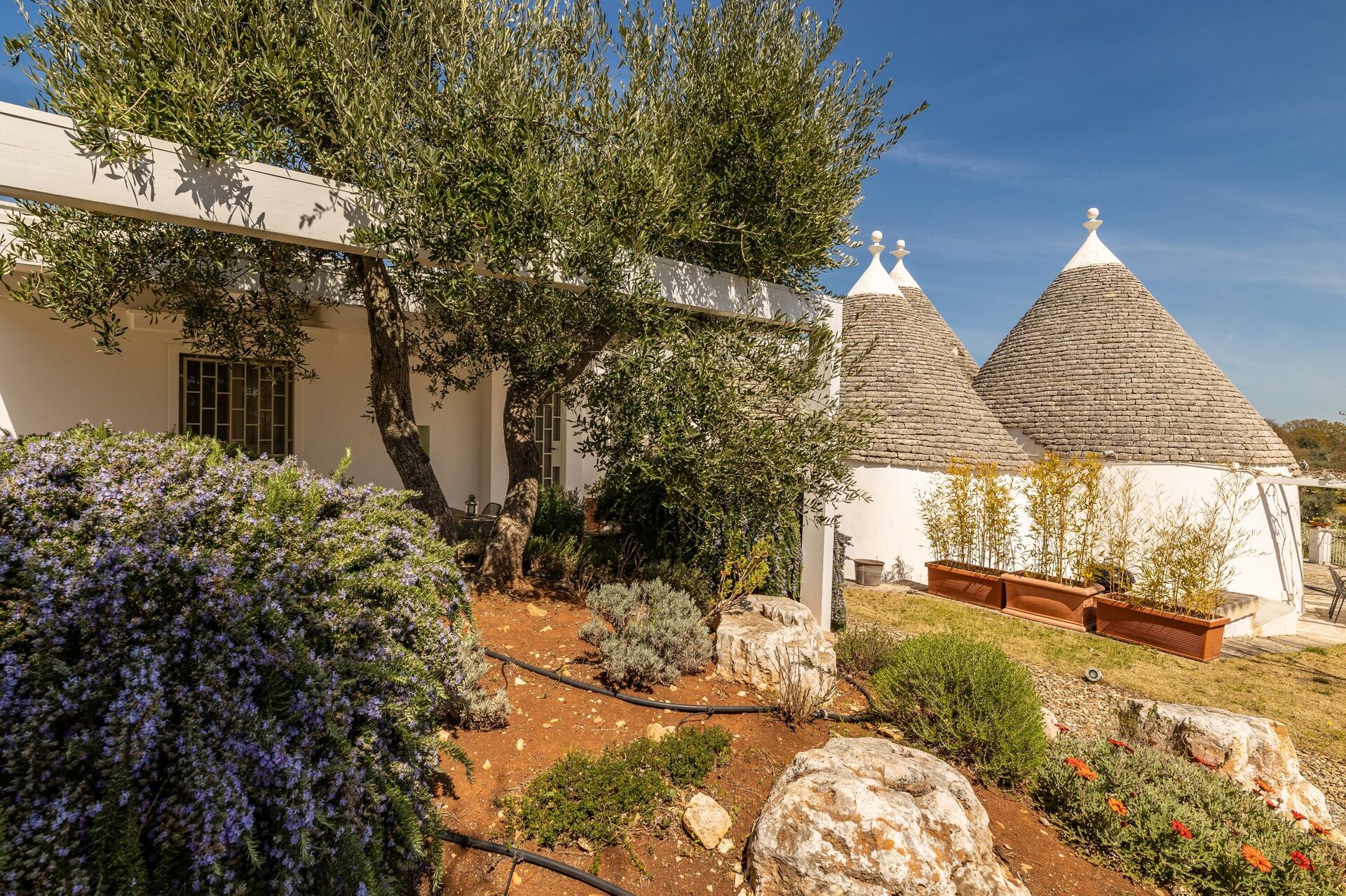 In addition, the lamia and the trullo each have a veranda where you can relax while taking in views of the Salento countryside.