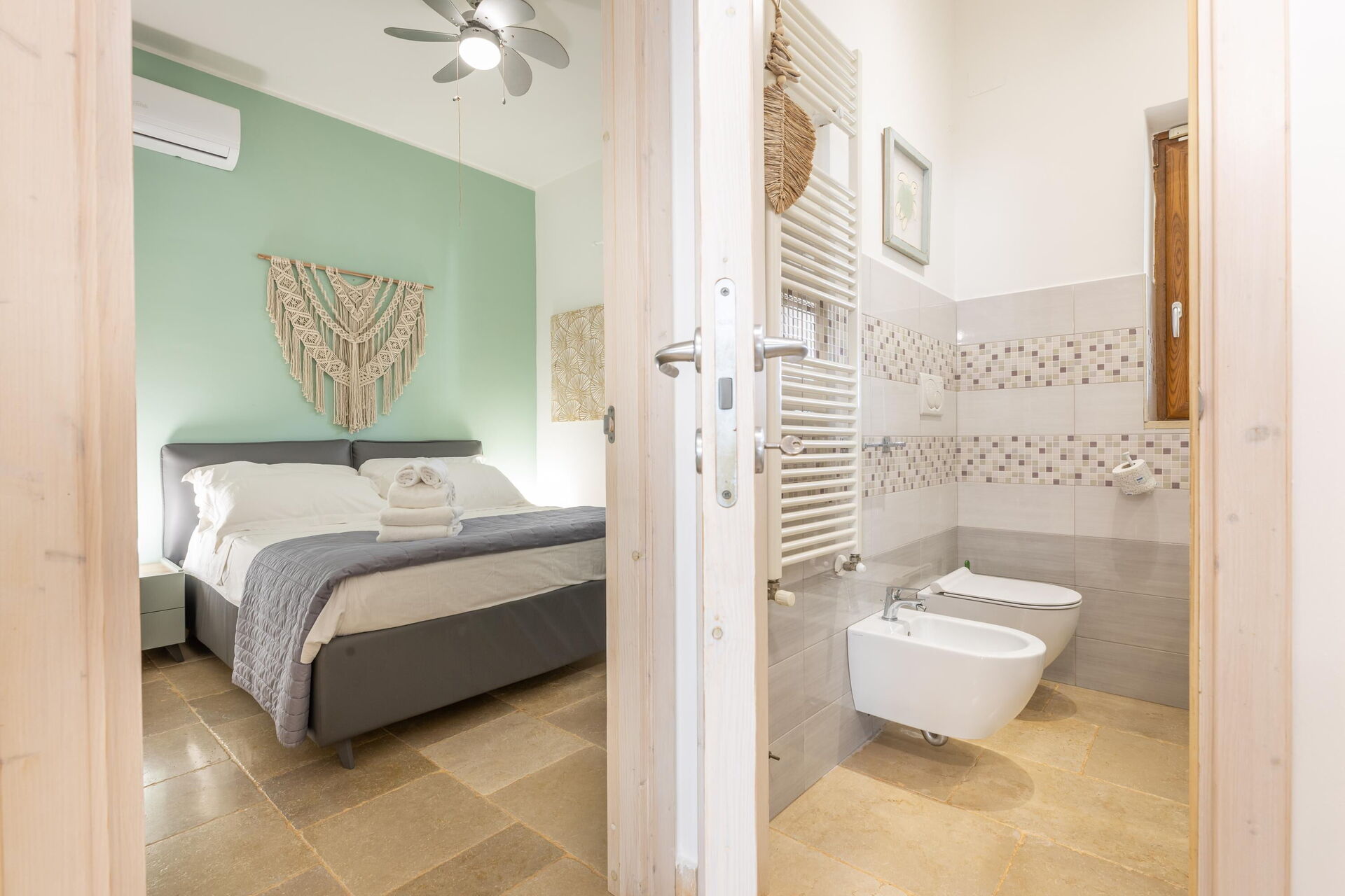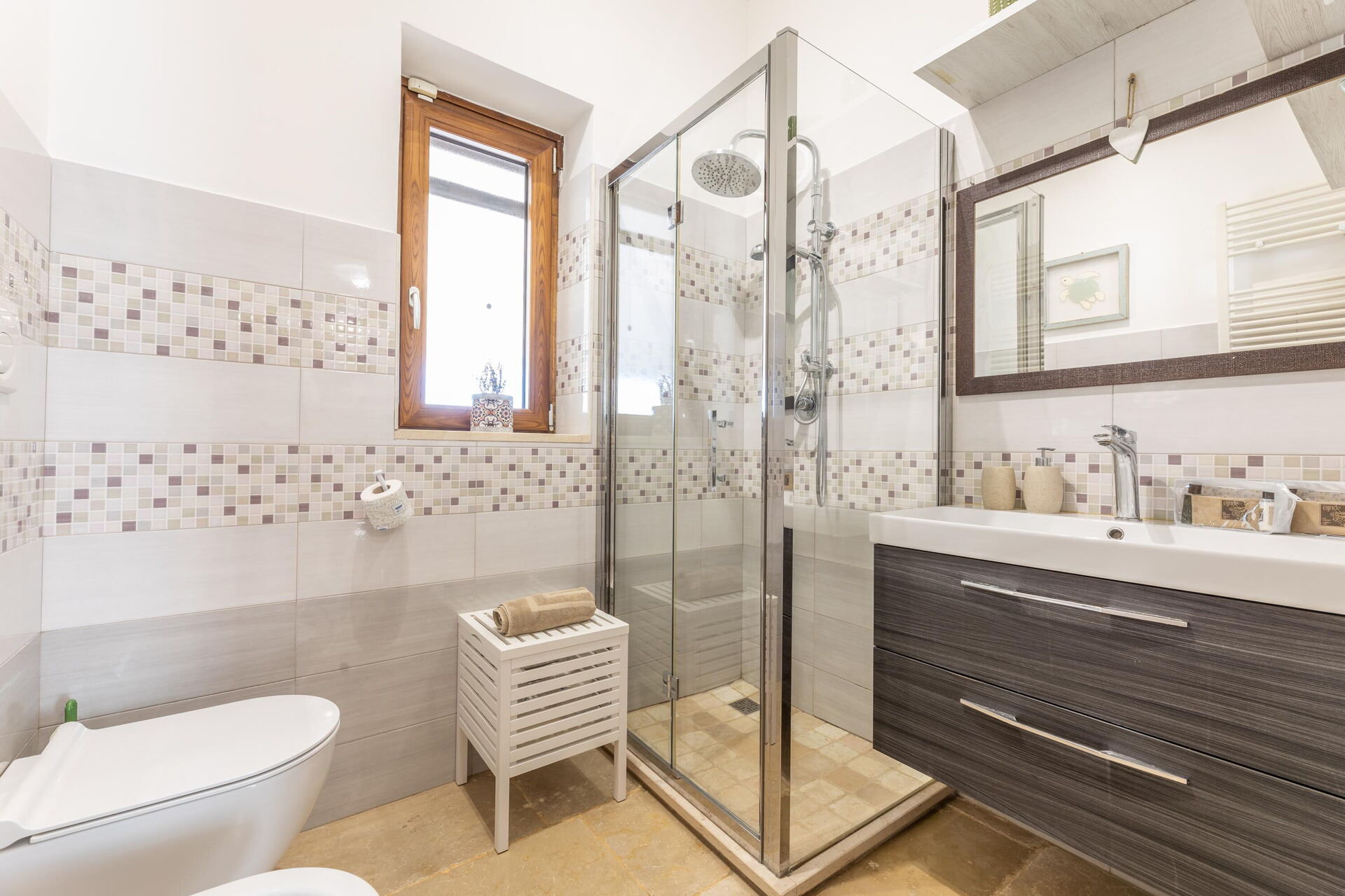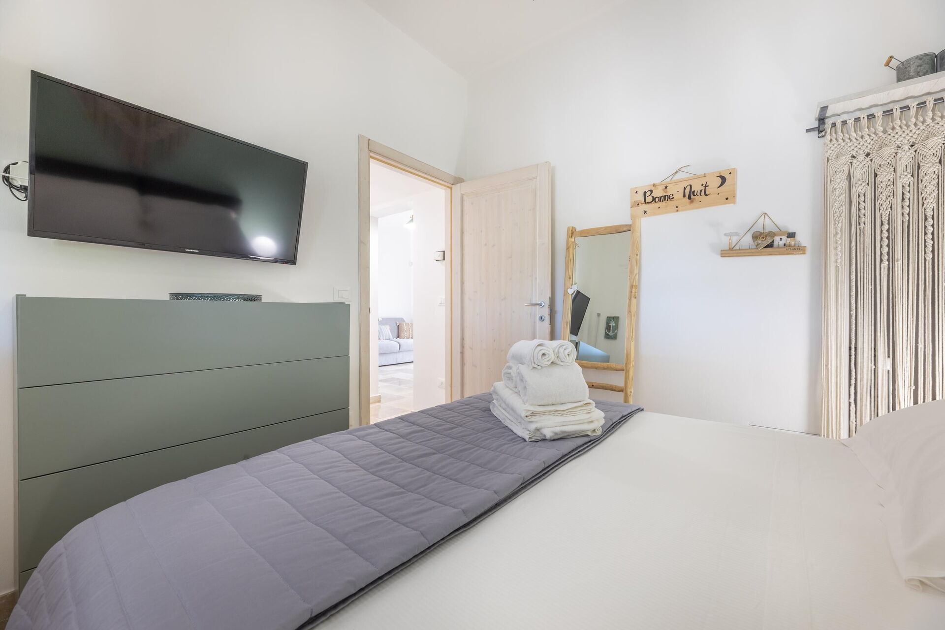 Villa Lampu di Luce offers one floor of welcoming, modern and functional interiors equipped with all amenities. It offers 2 bedrooms and a double sofa bed to comfortably accommodate up to 4/6 people.