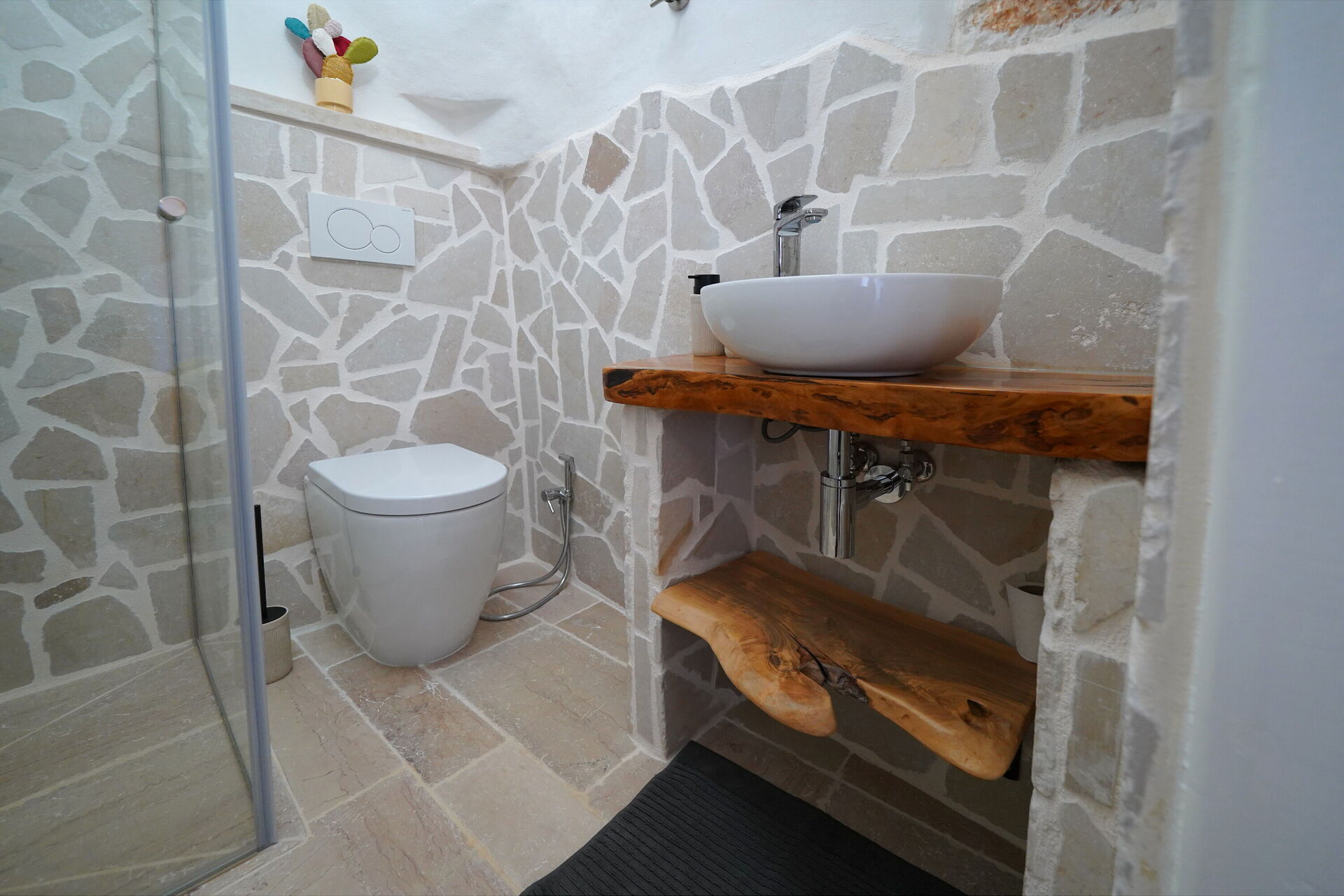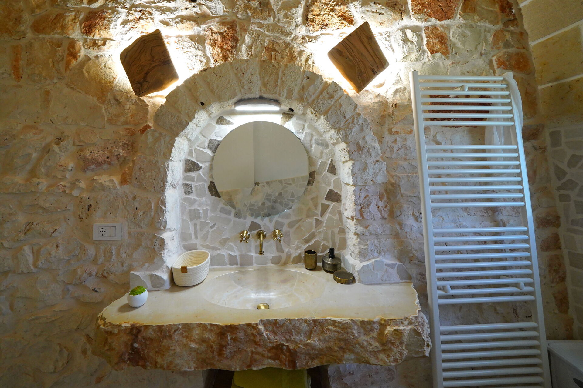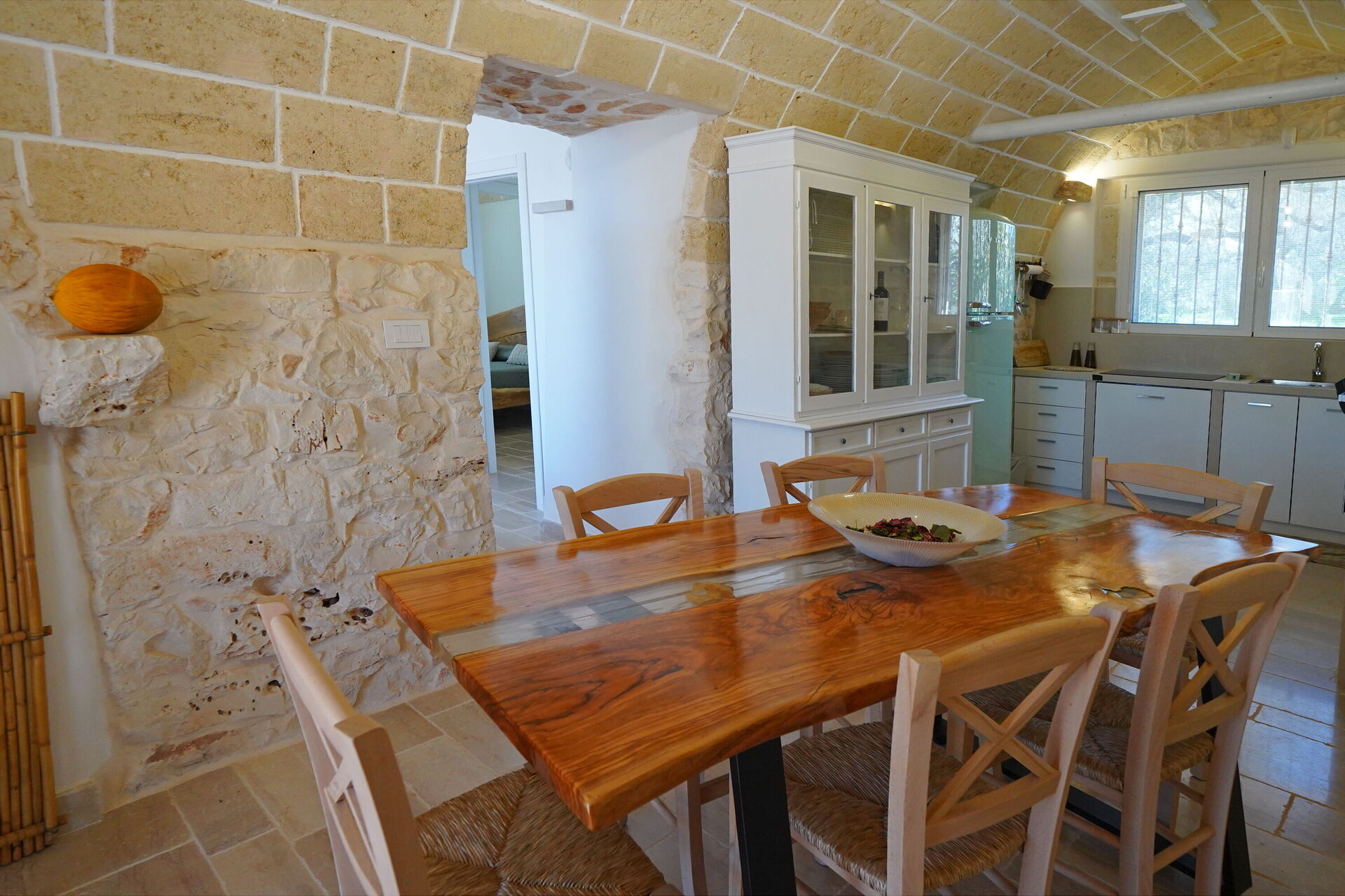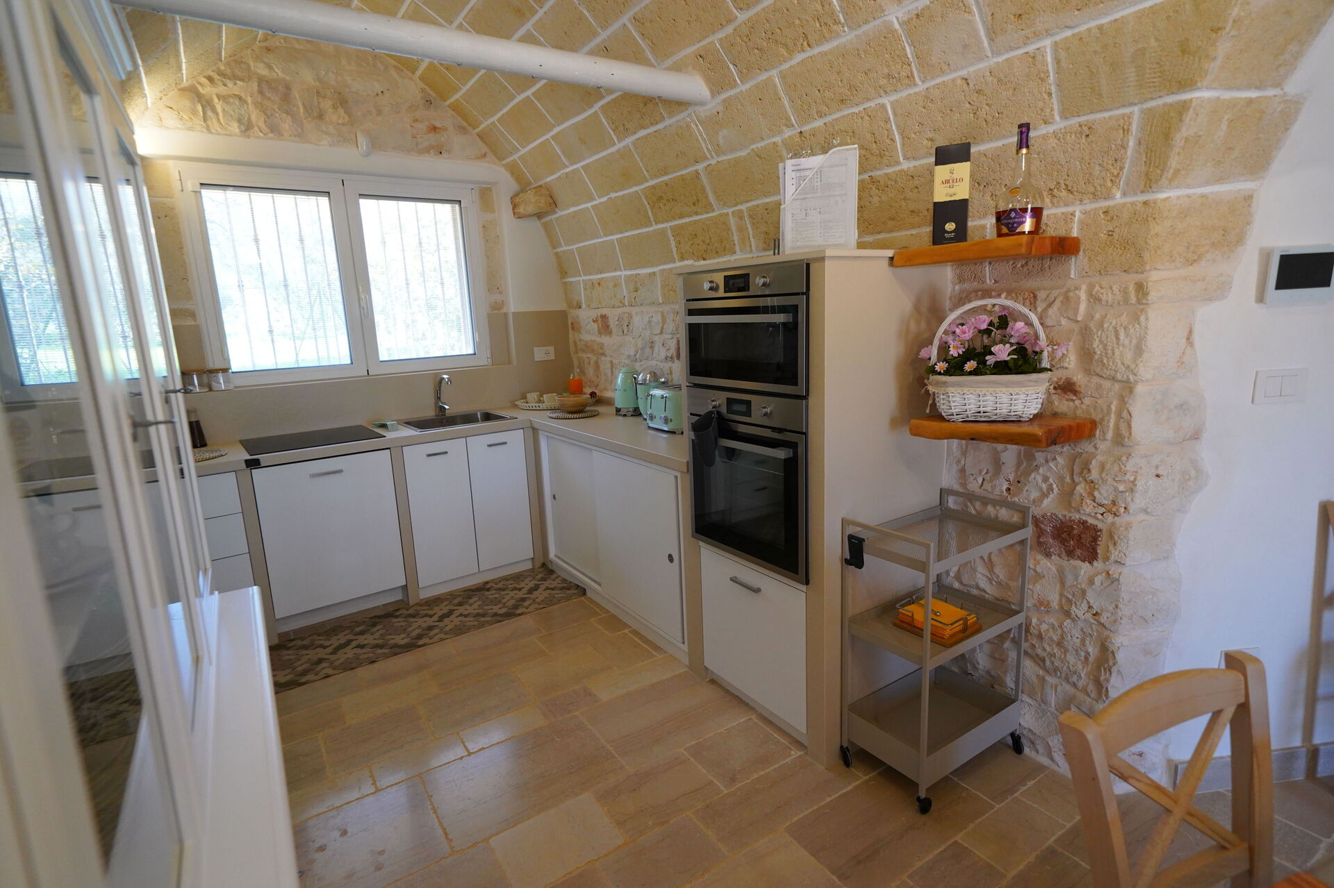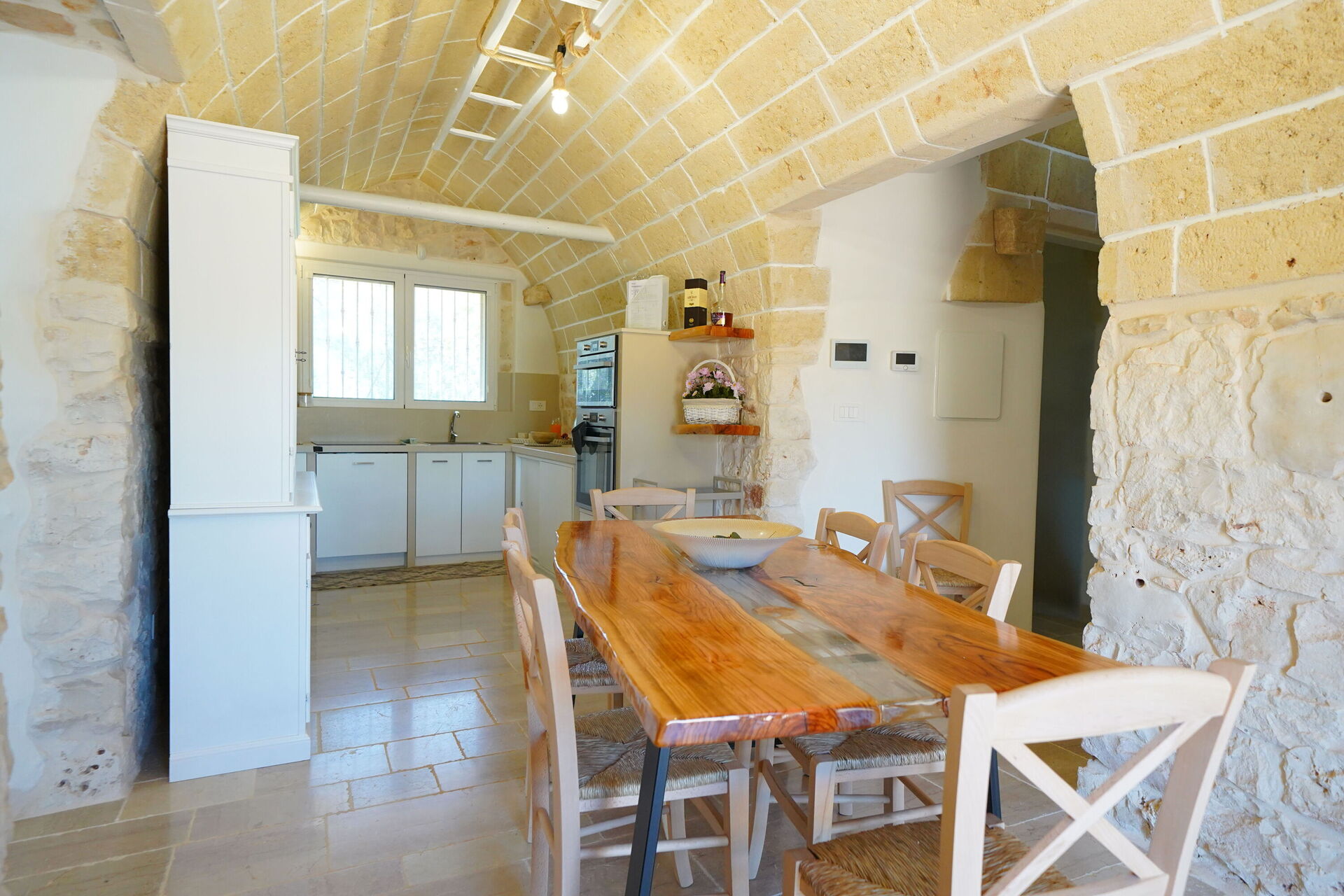 Trullo Samanta is completely independent and has recently been renovated (October 2025): inside, the rental property has been tastefully and simply furnished, to create a modern contrast with the building’s traditional materials like stone and olive wood, which are characteristic of trulli in Salento. The welcoming interiors are equipped with all amenities and 3 bedrooms to accommodate up to 6/7 people.