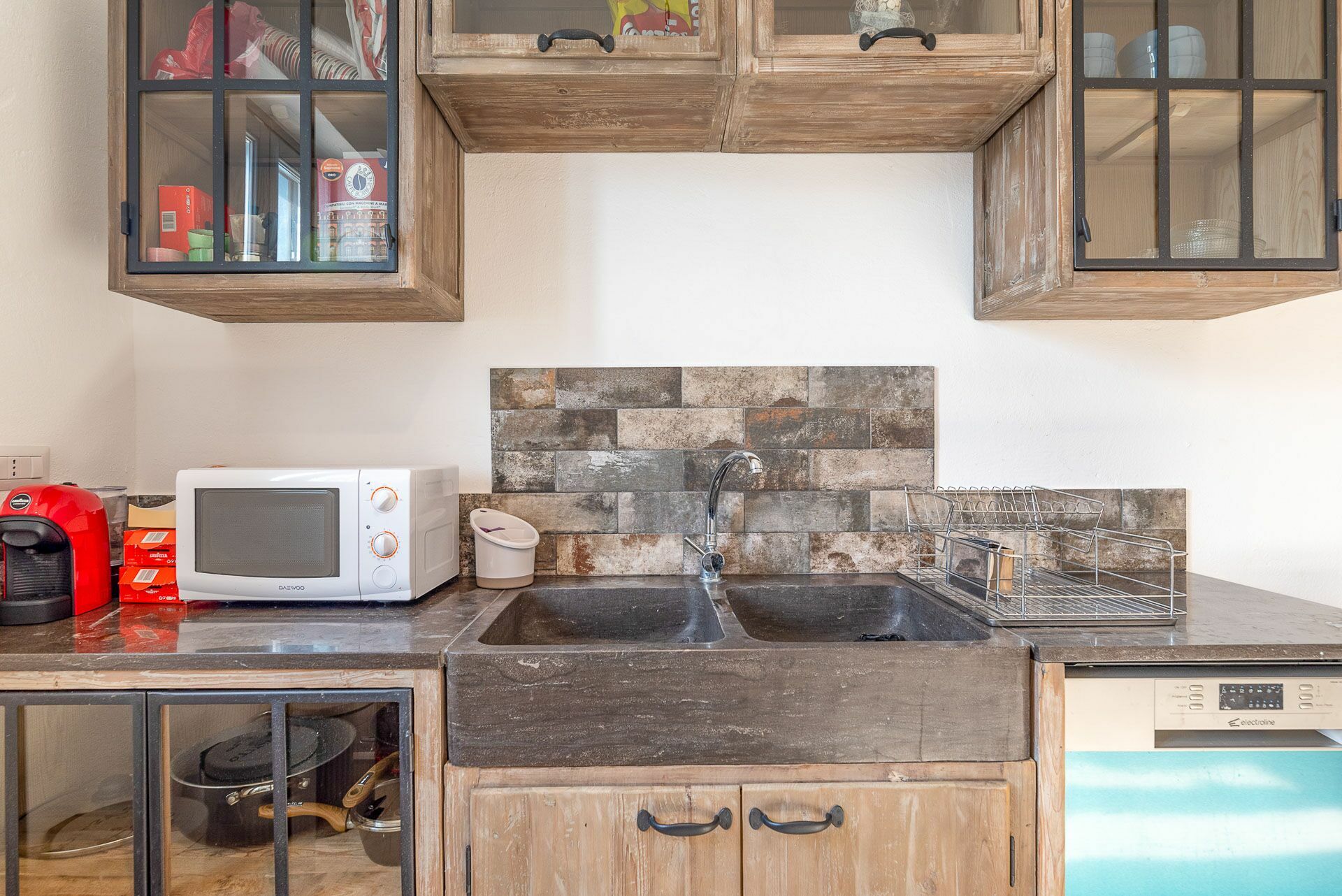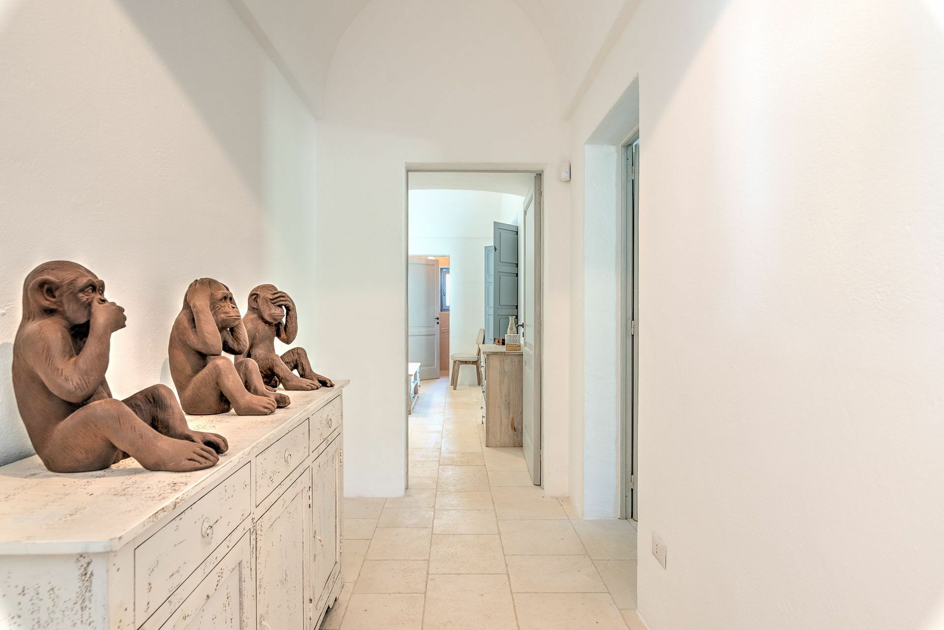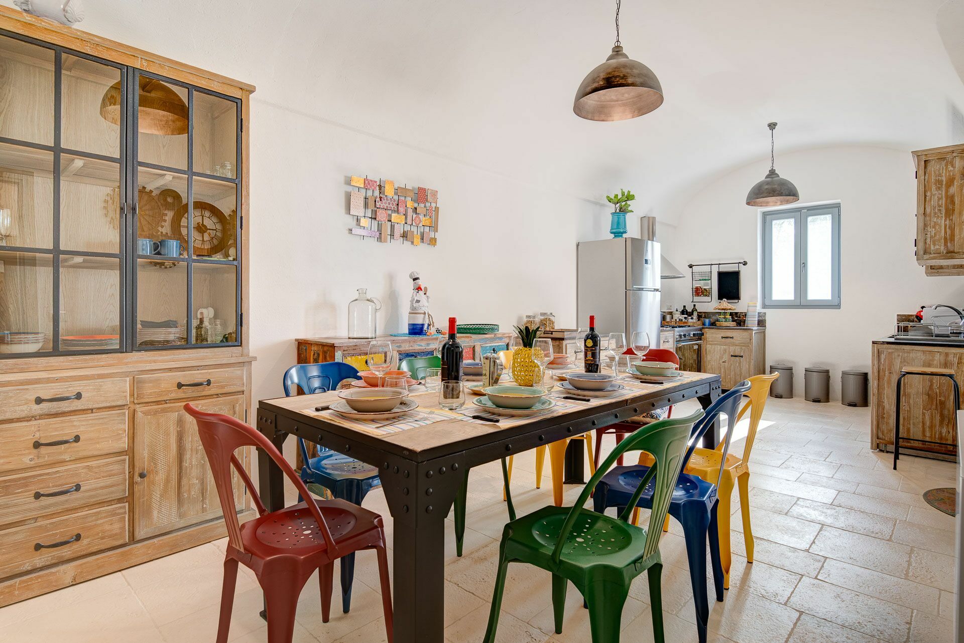 The rental’s interesting interiors are a perfect blend of contemporary design and rural architecture. With welcoming, functional spaces and 5 double bedrooms, the villa can accommodate up to 10 people. The interiors are bright and well-distributed: thanks to large living areas with tufa vaulted ceilings, even rainy days won’t stand in the way of enjoying time together with friends and family.