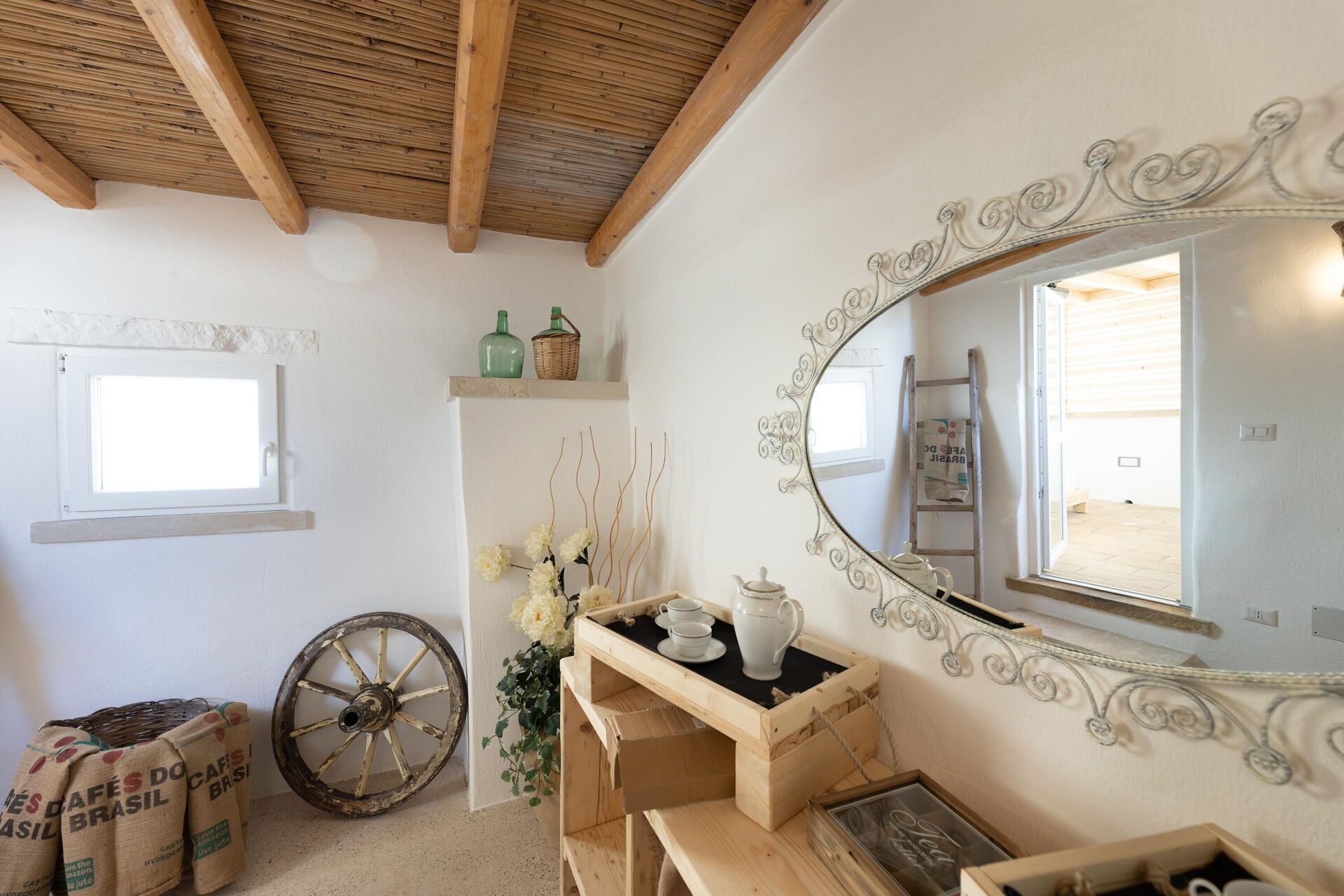 The roof terrace offers views of the roofs of Taurisano and the surrounding Apulian countryside.