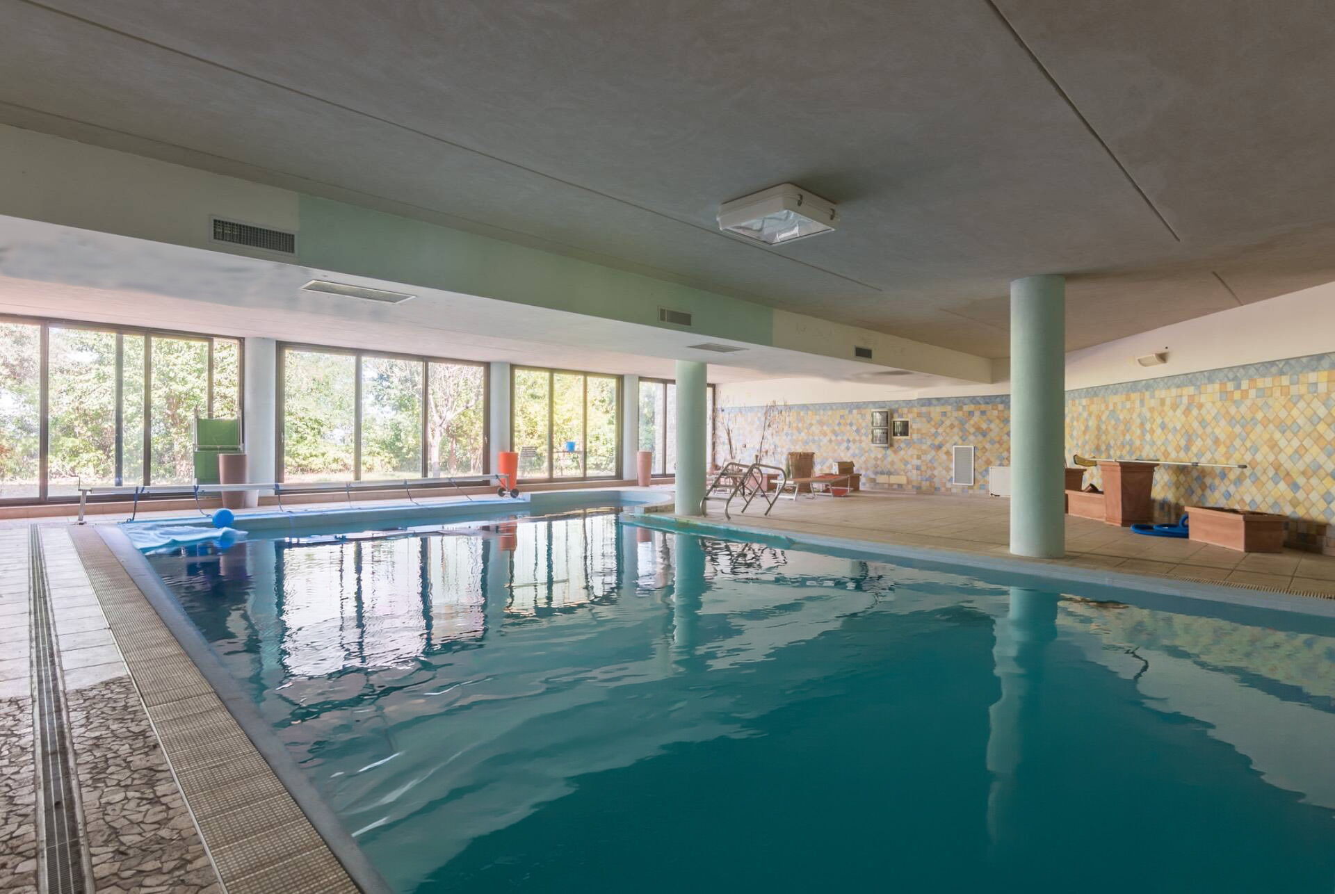 - private indoor pool (9 x 7 meters; minimum depth: 1.20 meters; maximum depth: 2 meters; with integrated hydromassage corner (3 x 2 meters, depth: 0.90 meters); the pool area is available from 10:00 to 20:00; heatable on request up to 23° (paying an extra and notifying at least 2 days before arrival); heating of the pool is available only from September to May