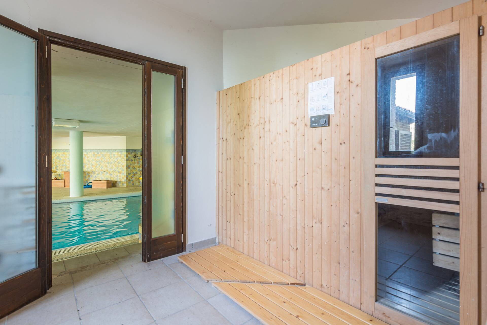IMPORTANT: the private indoor pool is available from 10:00 to 20:00; heatable on request up to 23° (paying an extra charge and notifying at least 2 days before arrival); pool heating is available only from September to May. The sauna is available from 17:00 to 20:00.
