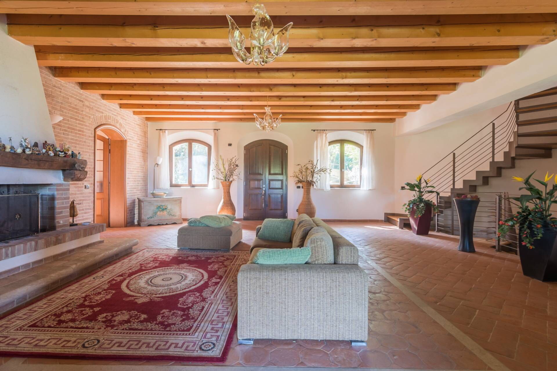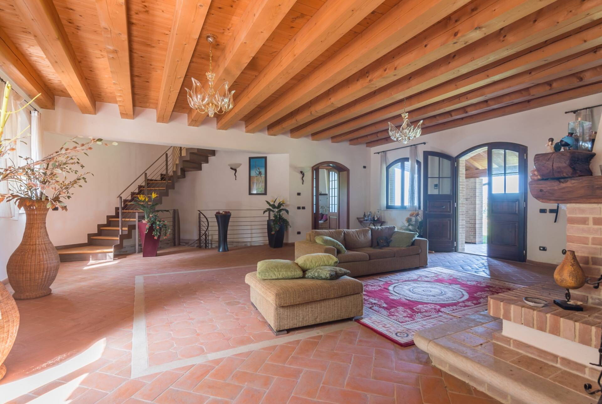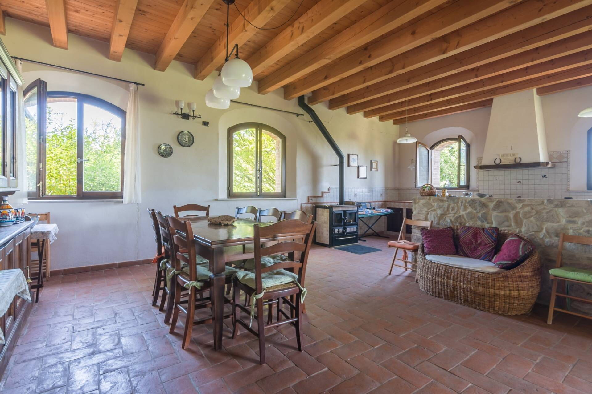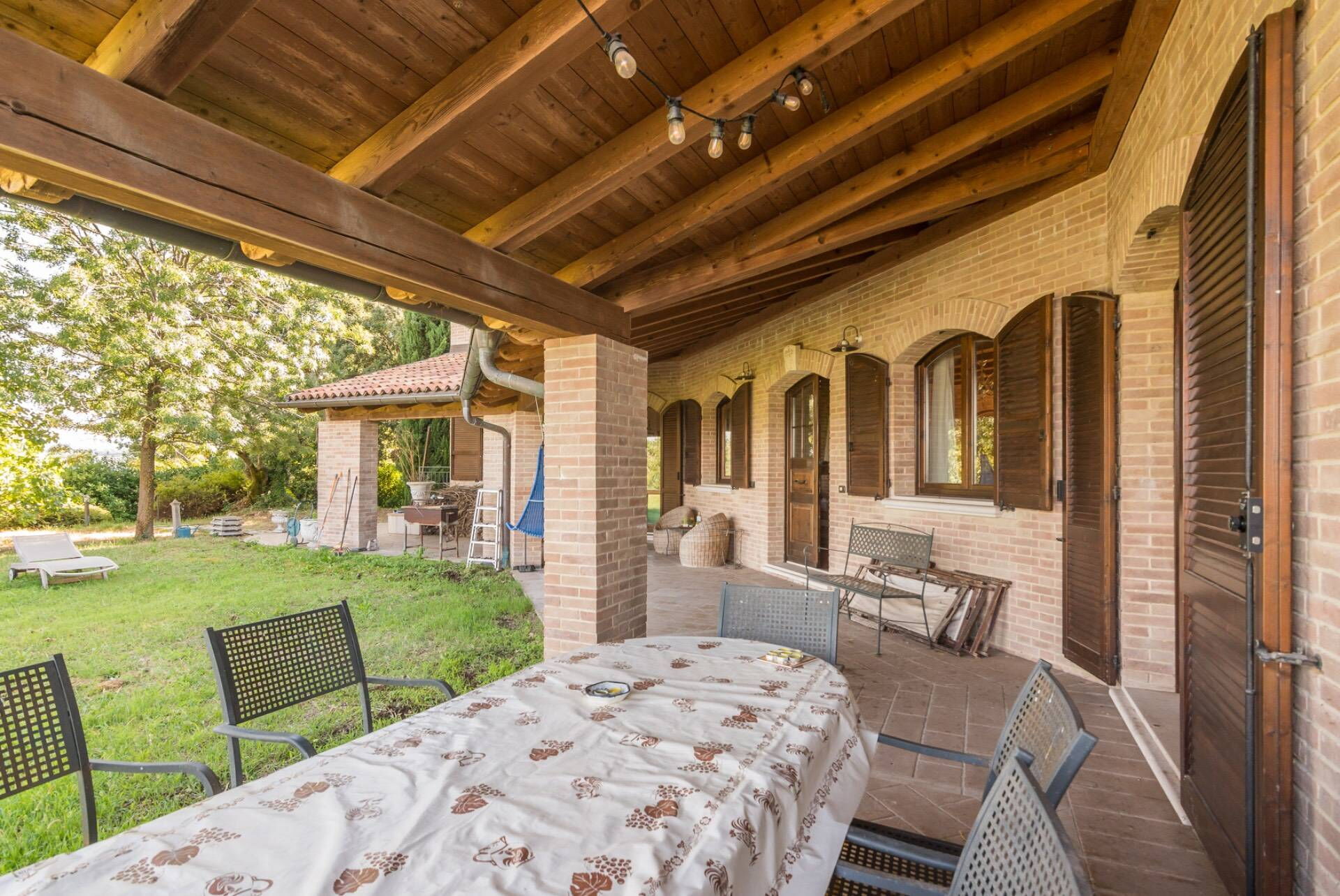 The villa, entirely built with green building techniques, is spread over three levels (ground floor, first floor and lower floor) surrounded by a large garden and with a private wood: the comfortable interior rooms are bright and equipped with every comfort. In all, Villa Belvedere San Bartolo has 5 bedrooms and large common areas which also include a wellness area with sauna and indoor pool (heatable on request only from September to May) with hydromassage corner. This villa can comfortably accommodate up to 10/11 people.