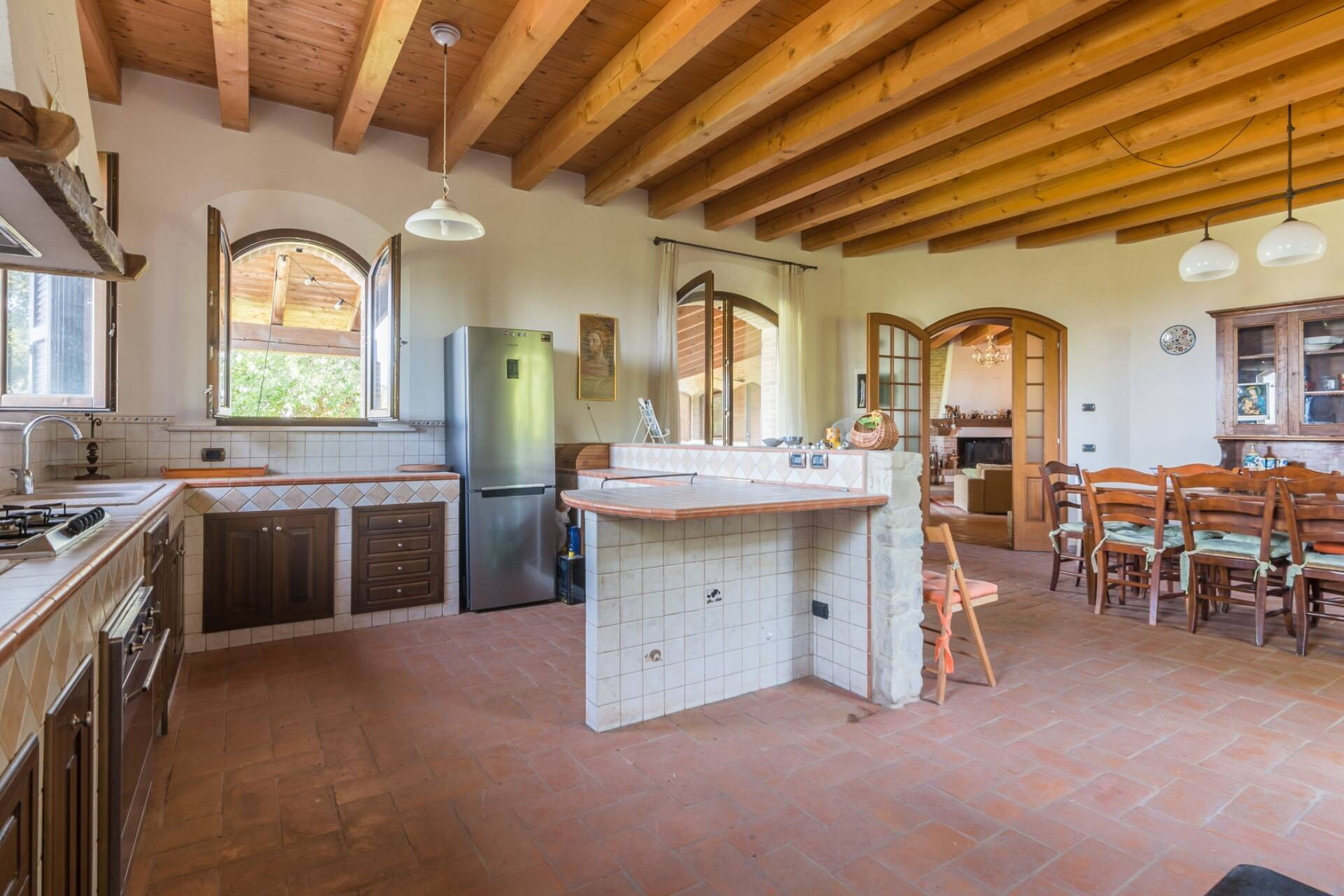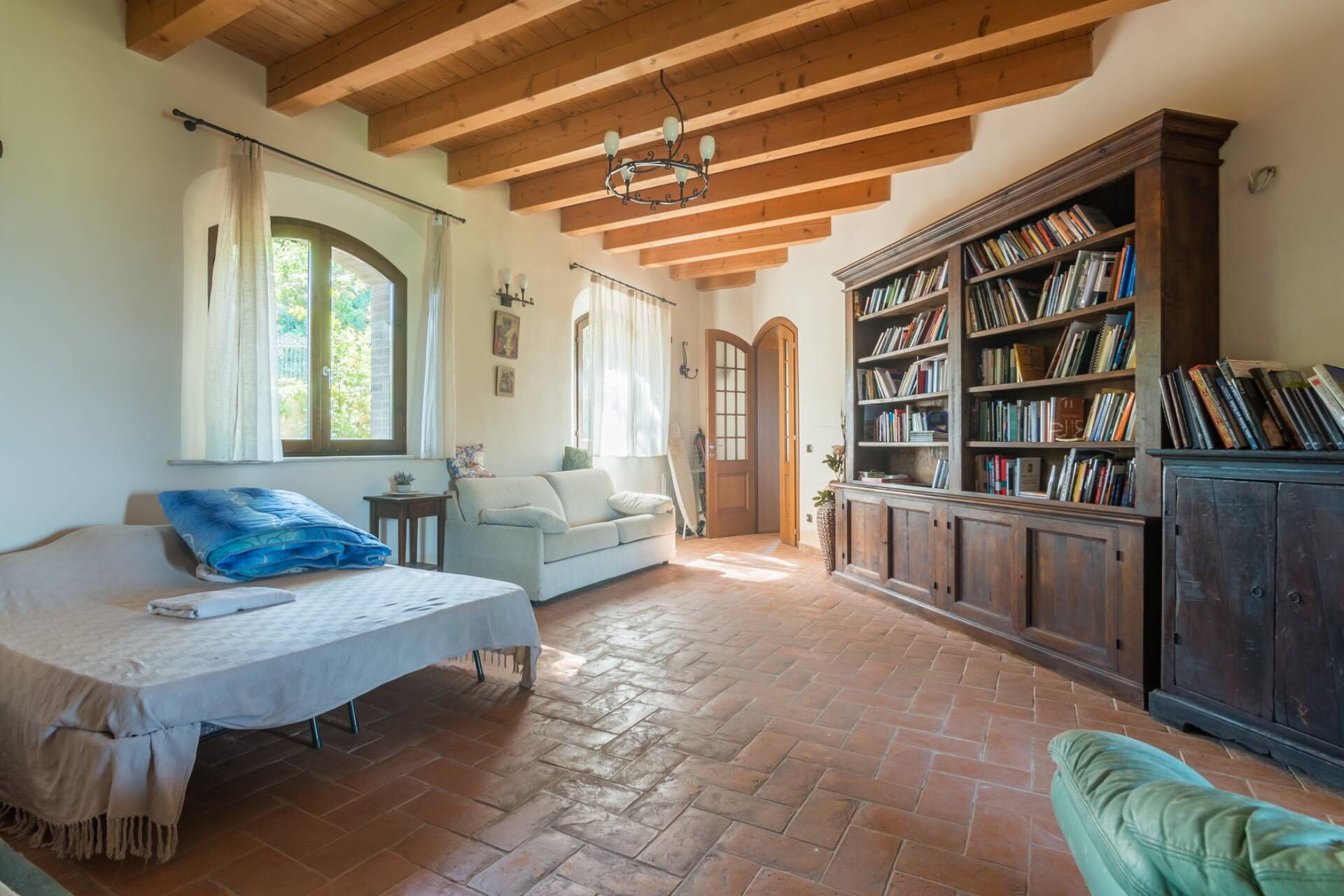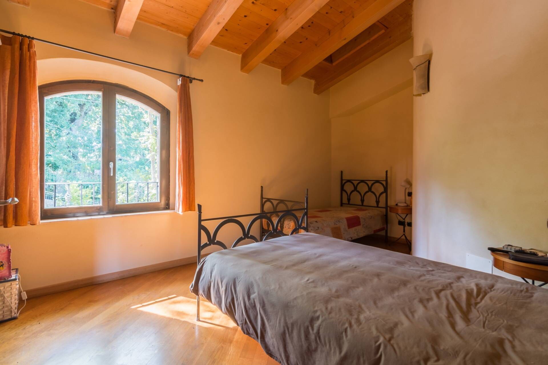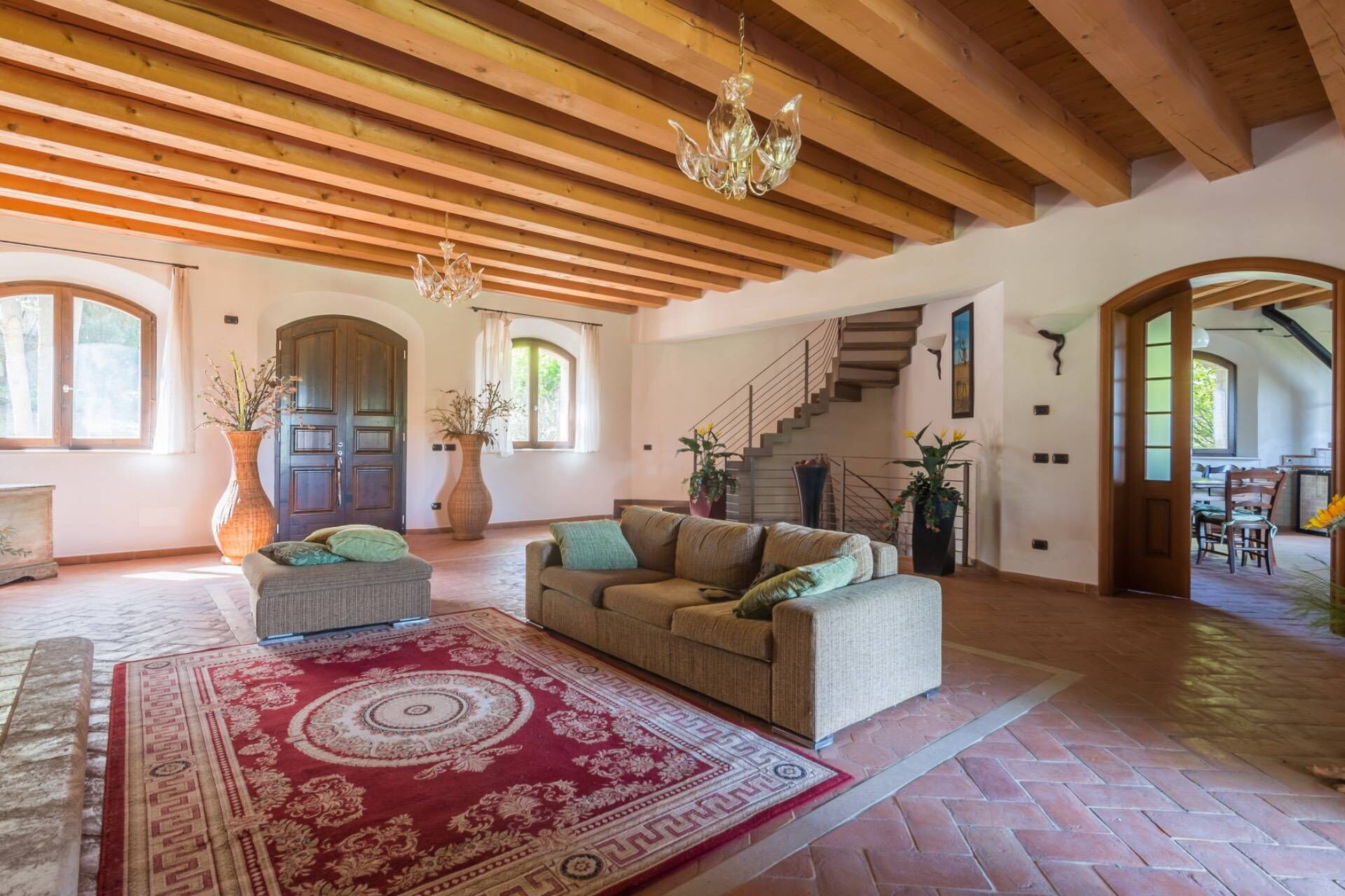 The villa, entirely built with green building techniques, is spread over three levels (ground floor, first floor and lower floor) surrounded by a large garden and with a private wood: the comfortable interior rooms are bright and equipped with every comfort. In all, Villa Belvedere San Bartolo has 5 bedrooms and large common areas which also include a wellness area with sauna and indoor pool (heatable on request only from September to May) with hydromassage corner. This villa can comfortably accommodate up to 10/11 people.