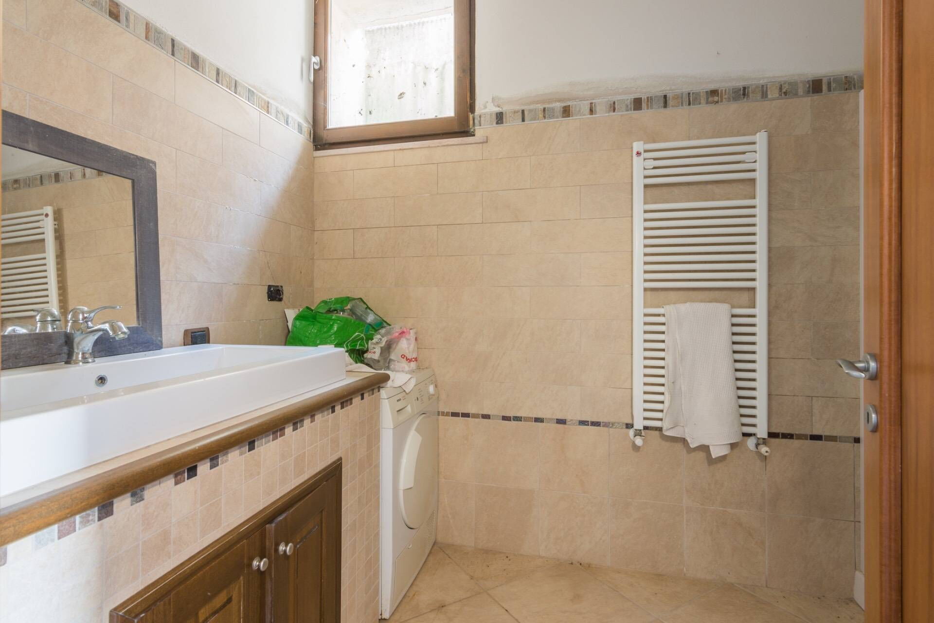 Ground floor: large and bright living area consisting of a living room (fireplace, smart TV) with access to the veranda, kitchen (oven, freezer, refrigerator, dishwasher, hob, espresso coffee machine, toaster, American coffee machine, microwave) with dining area, suite with double bedroom and study with single bed and private bathroom with shower; access to the garden.