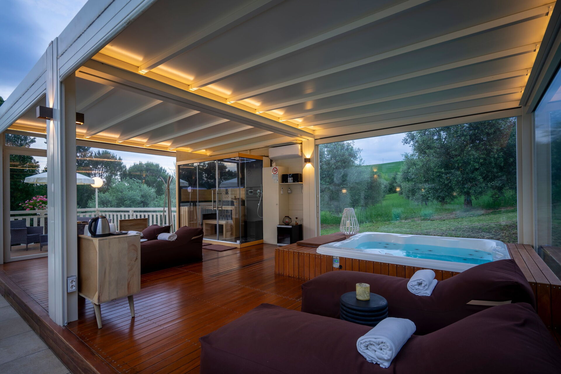 • outside spa area with sauna e Turkish bath available from 14:00 until 24:00, Hot tub and jacuzzi available around the clock
