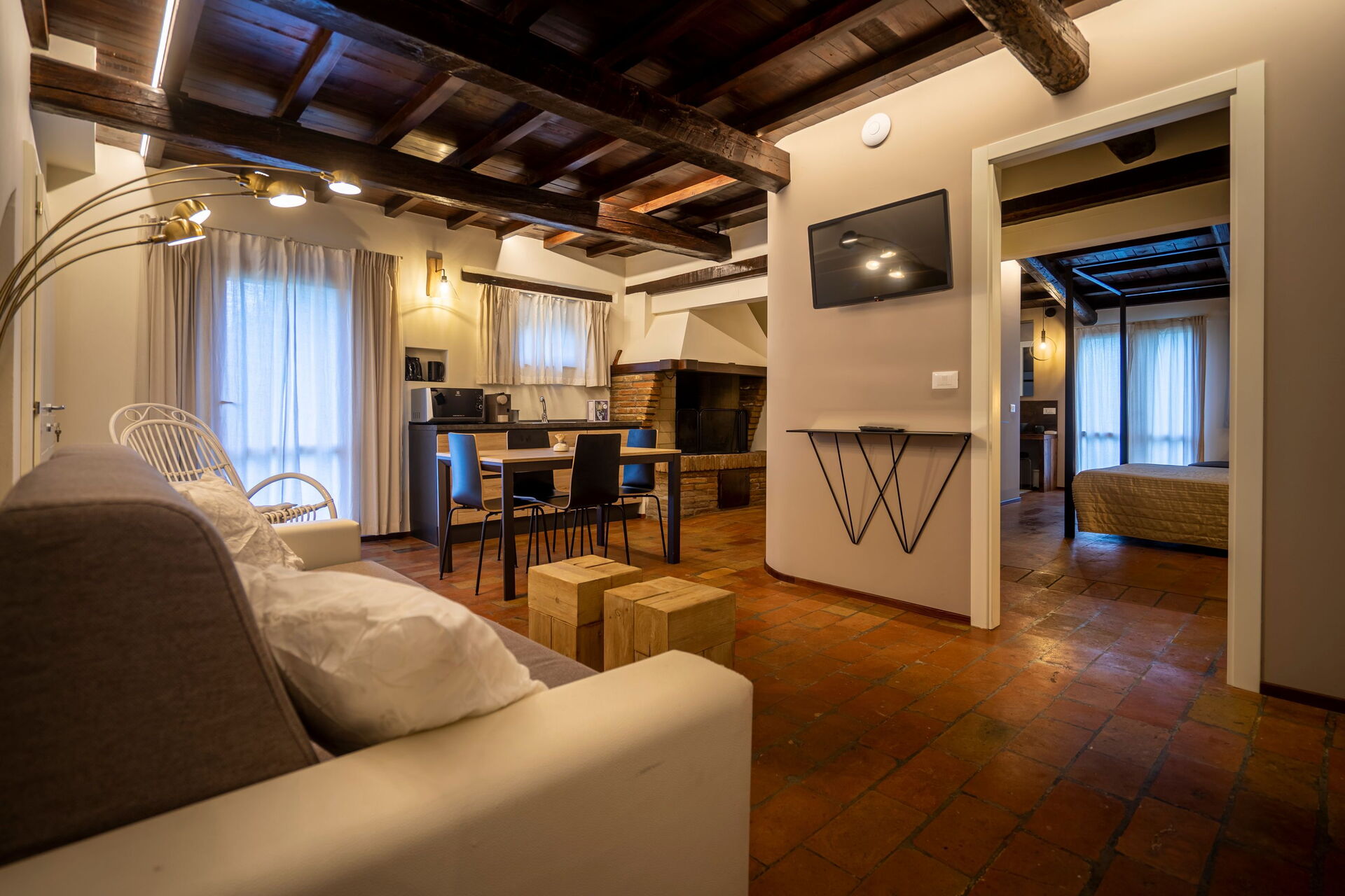 Thanks to the 4 bedrooms along with sofa beds on 2 levels this property can comfortably welcome from 8 up to 12 guests. The interiors are welcoming, consisting of modern furnishings and equipped with every comfort.