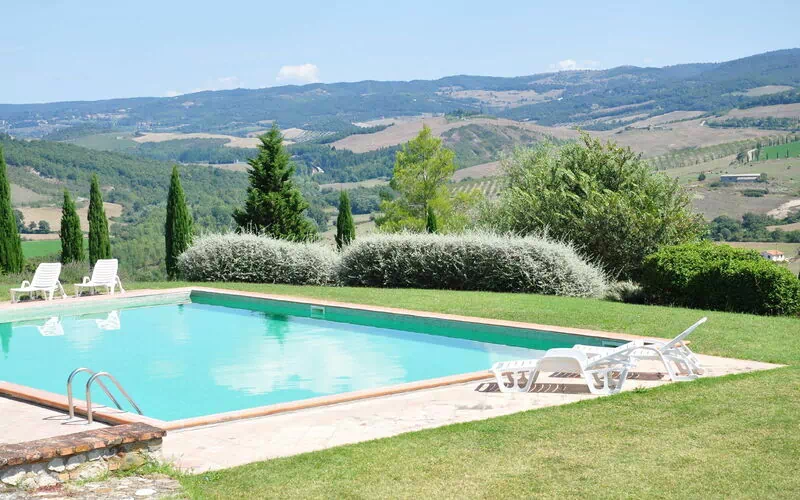 This exclusive farmhouse is ideally located for day trips to nearby artistic and cultural treasures such as Siena, Pienza, Montepulciano, Sorano, Pitigliano, Orvieto, Lake Bolsena, and the renowned thermal baths of San Casciano dei Bagni.