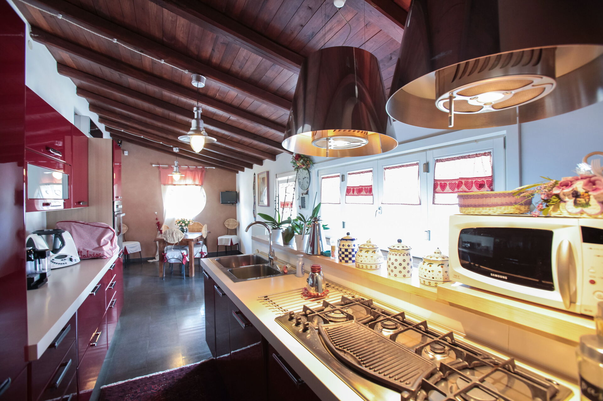 Ground floor: dining area with kitchen (cooktop, oven, refrigerator, freezer, dishwasher, microwave, toaster, espresso coffee maker) and garden access, bathroom with shower.