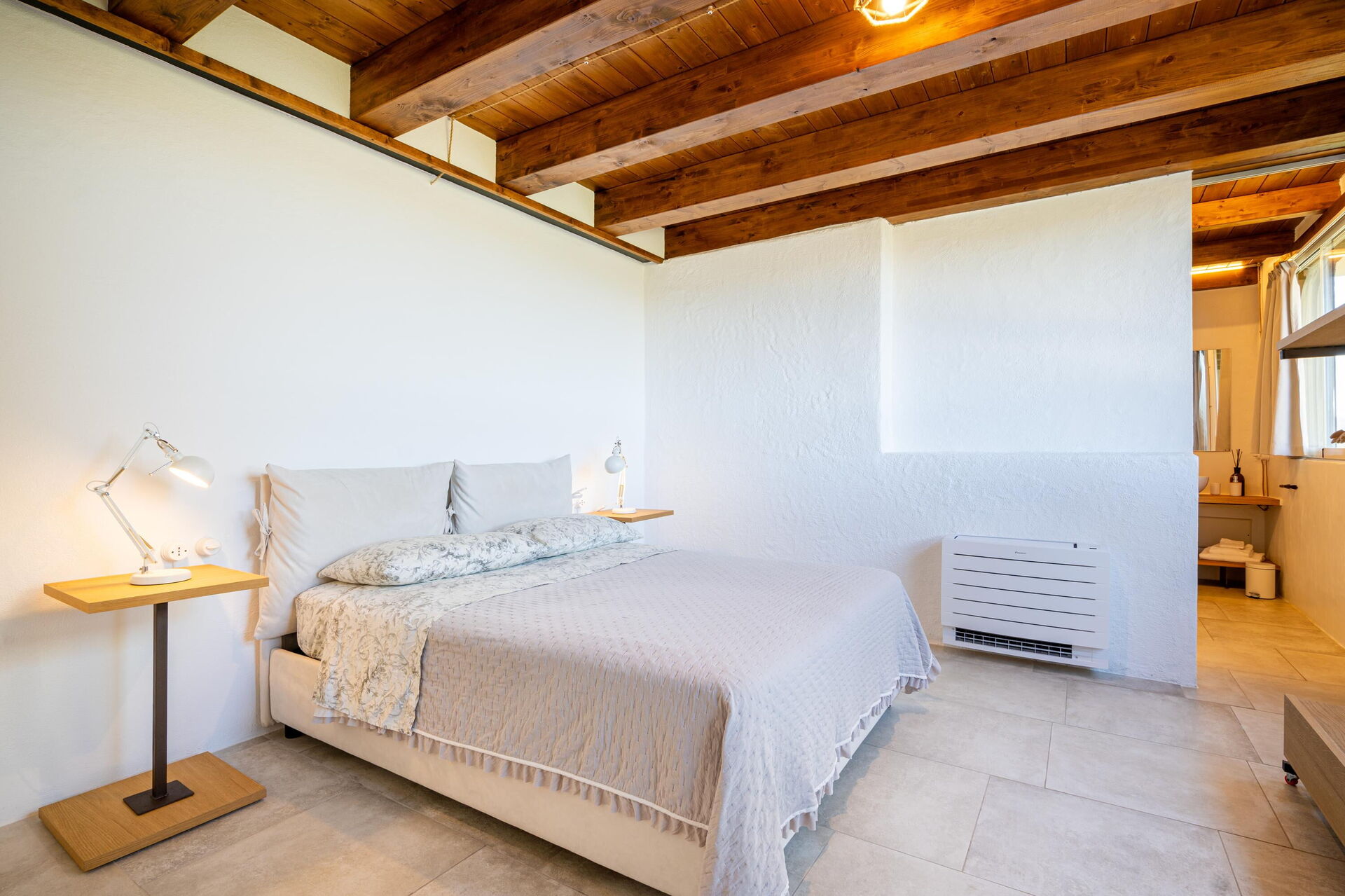 Comfortably furnished and elegantly designed, Villa Sole i Ginepri combines modern amenities with its unique architectural charm. All rooms are situated on a single level, with two beautifully appointed bedrooms that comfortably accommodate up to four guests.