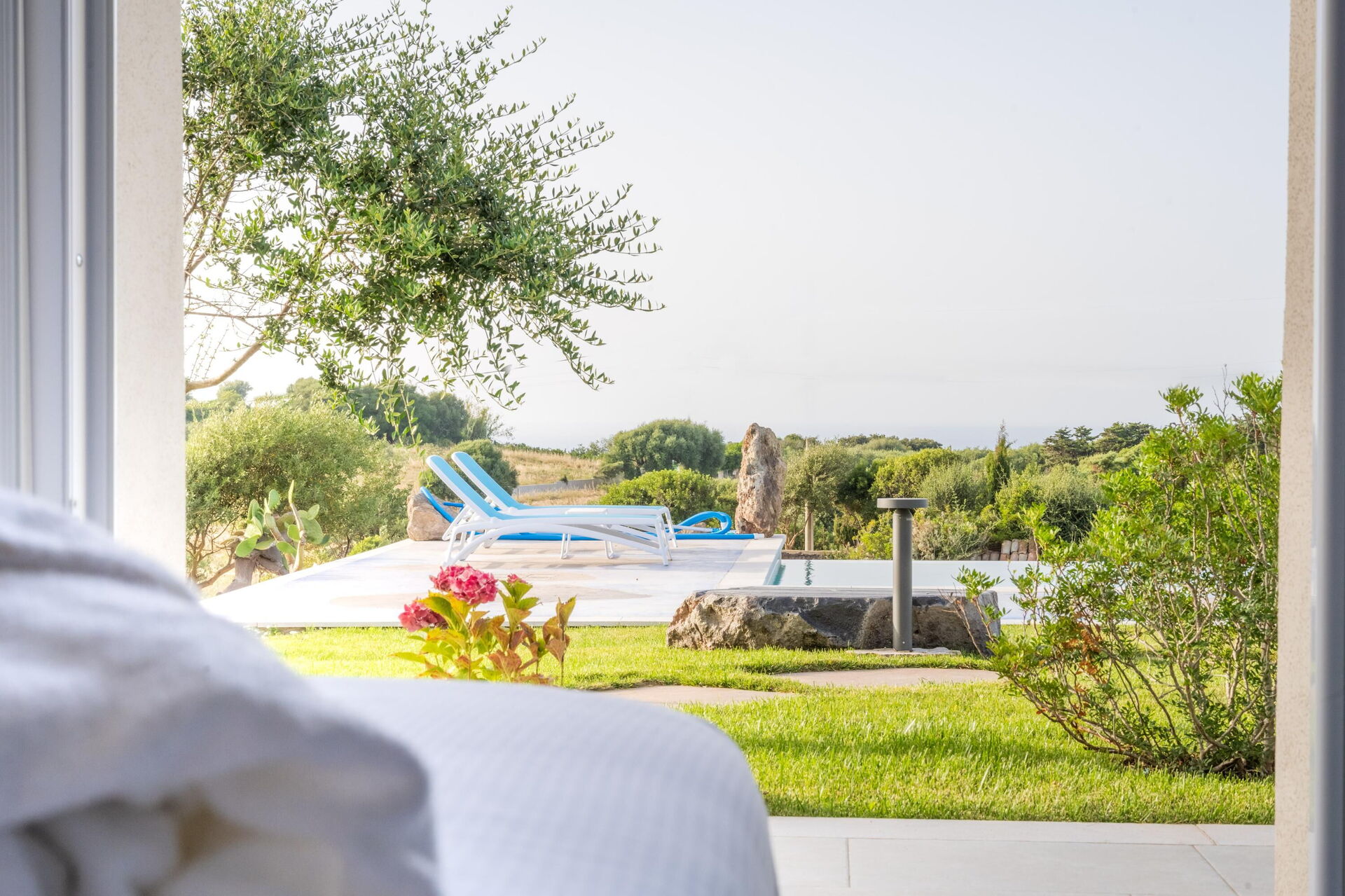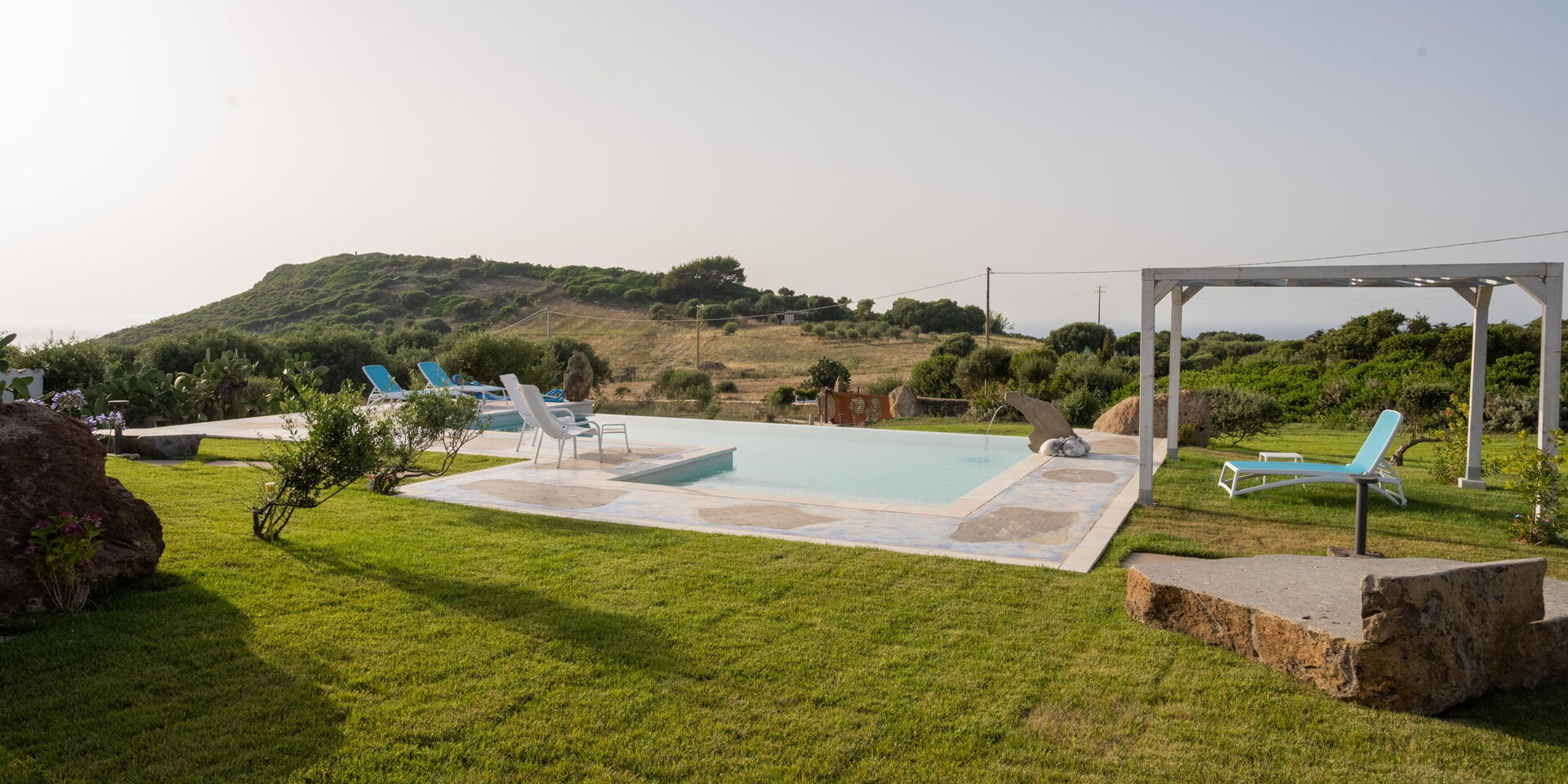The scenic grounds feature many lovely areas: relax in the private pool or in the large sunbathing areas, or dine outside on the furnished veranda. Villa Fior d'Acqua is ideal for relaxing together with family and friends under the Sardinian sun.