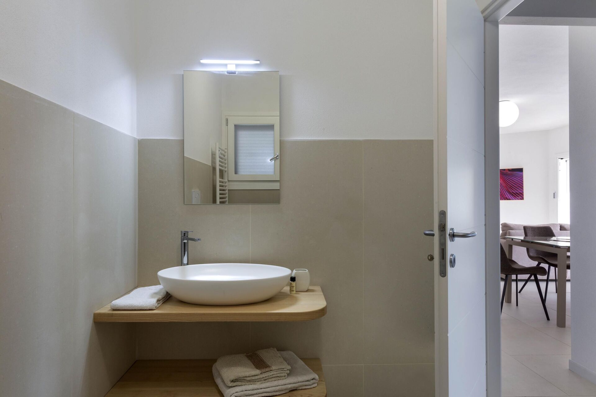 Lower ground floor: Laundry room (washing machine, dryer, iron and ironing board).