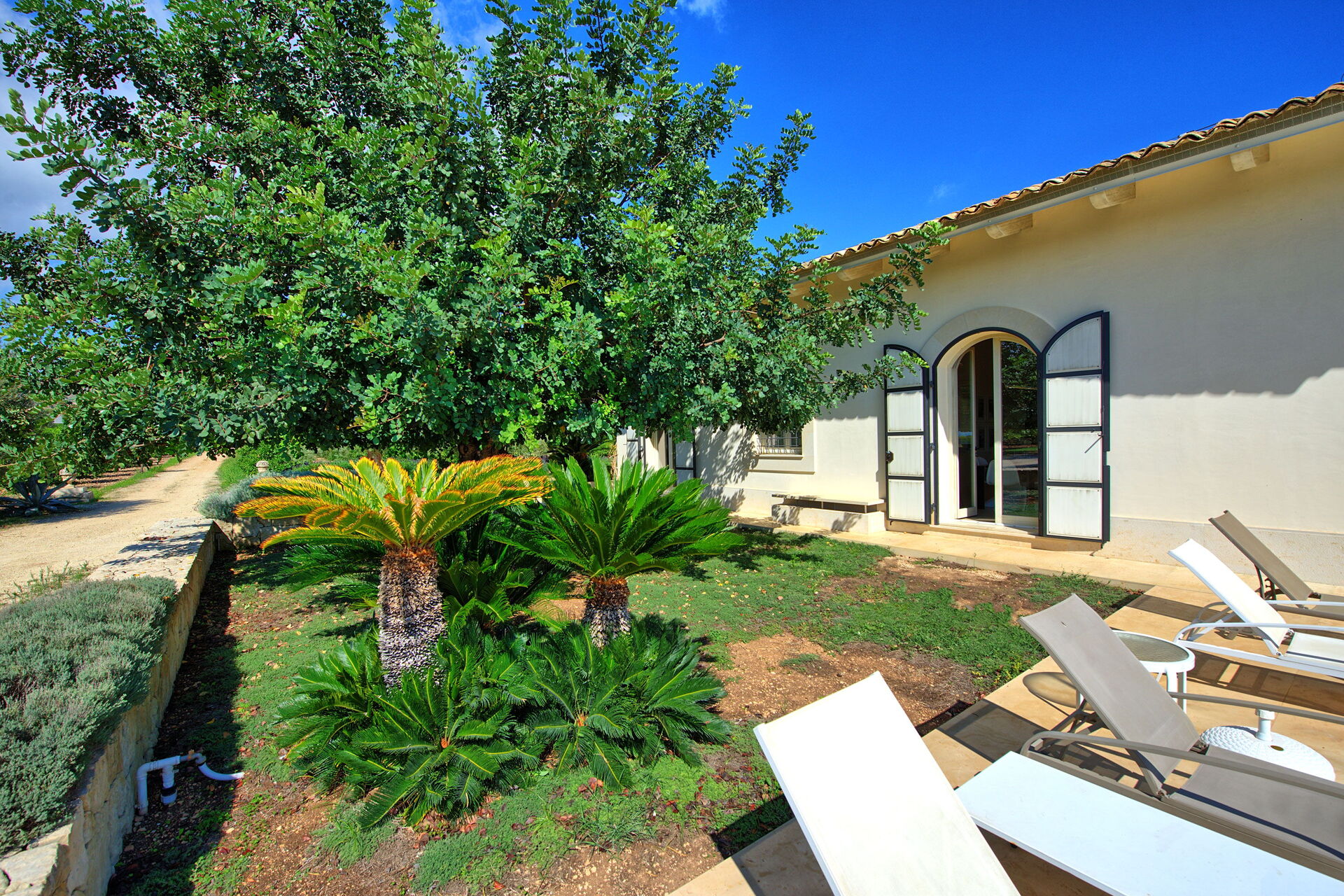 Surrounded by citrus trees and centuries-old olive trees, the villa offers privacy for a relaxing vacation with family or friends. There is a main road that runs about 200 meters from the property.