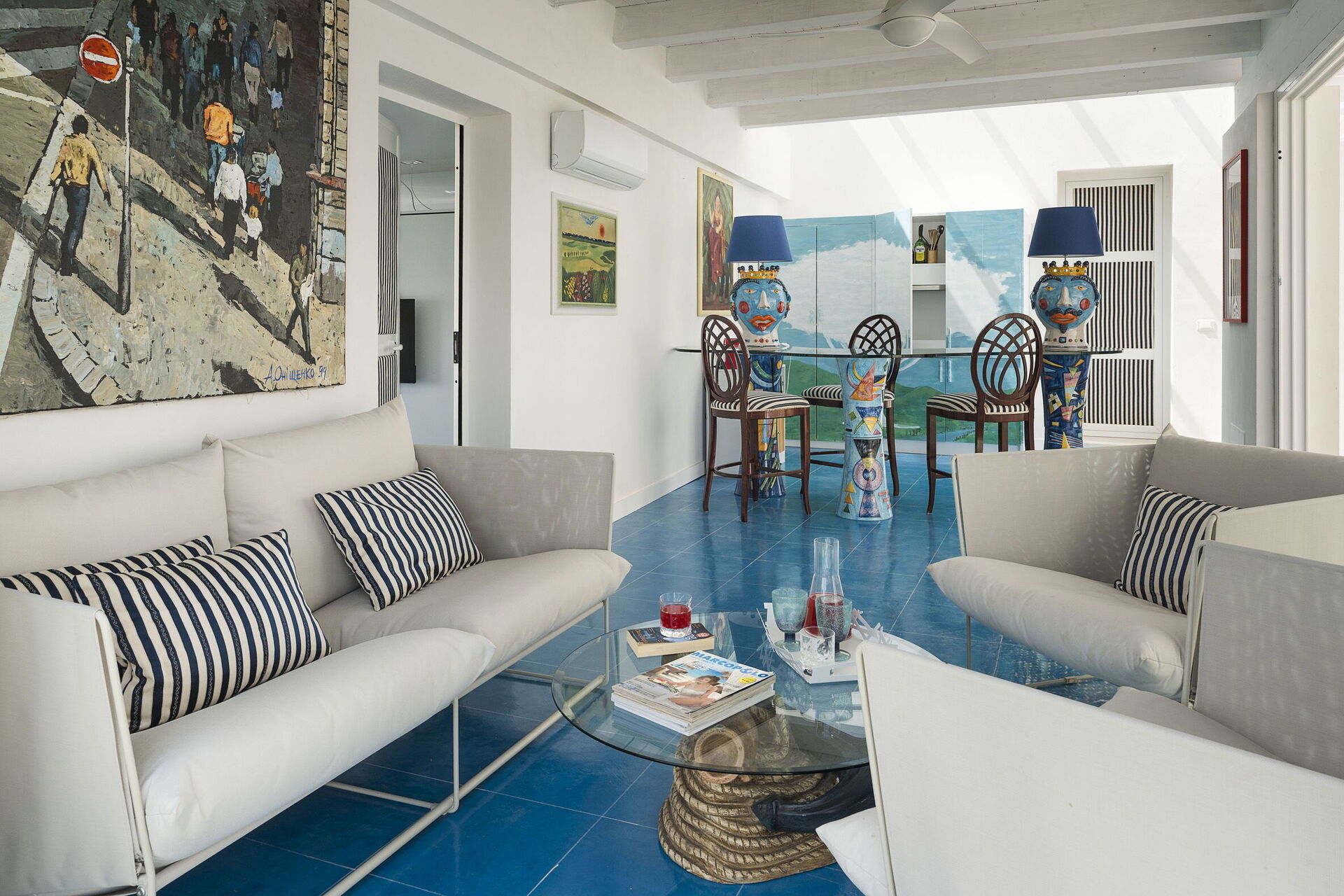 Additional areas, such as the veranda with outdoor dining area, make this the perfect place for relaxing under the hot Sicilian sun.
