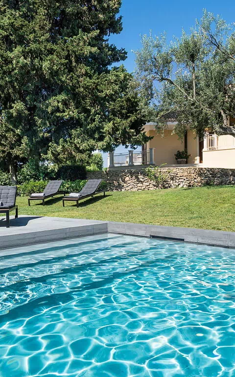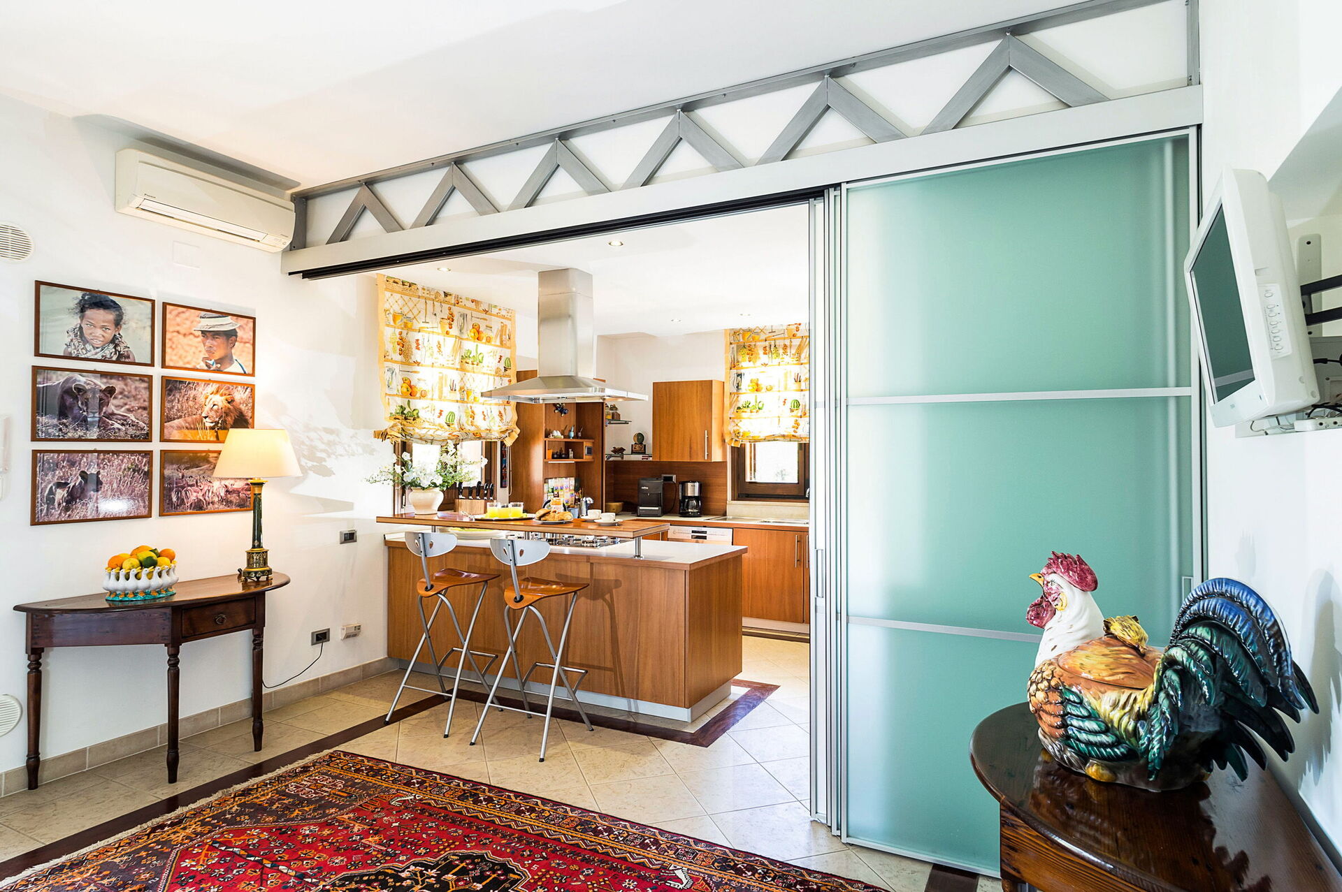A stone path leads you to Villa Profumo d’Oriente, nestled in a garden of Mediterranean plants. There is a beautiful pool heated up to about 26°C: the perfect place to relax on sunny Italian days with friends and family!