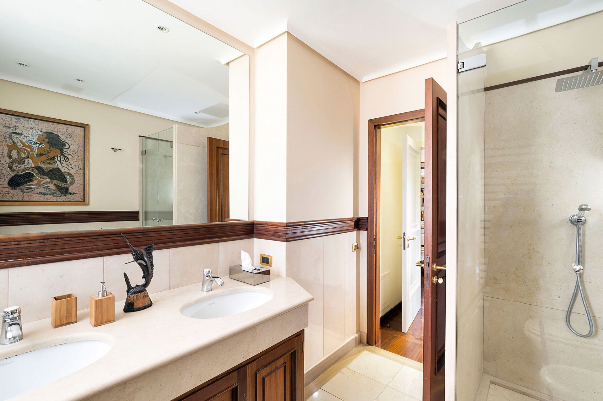Lower first floor: double bedroom with private bathroom with shower, bedroom with 2 single beds, bathroom with shower, massage room, laundry room.