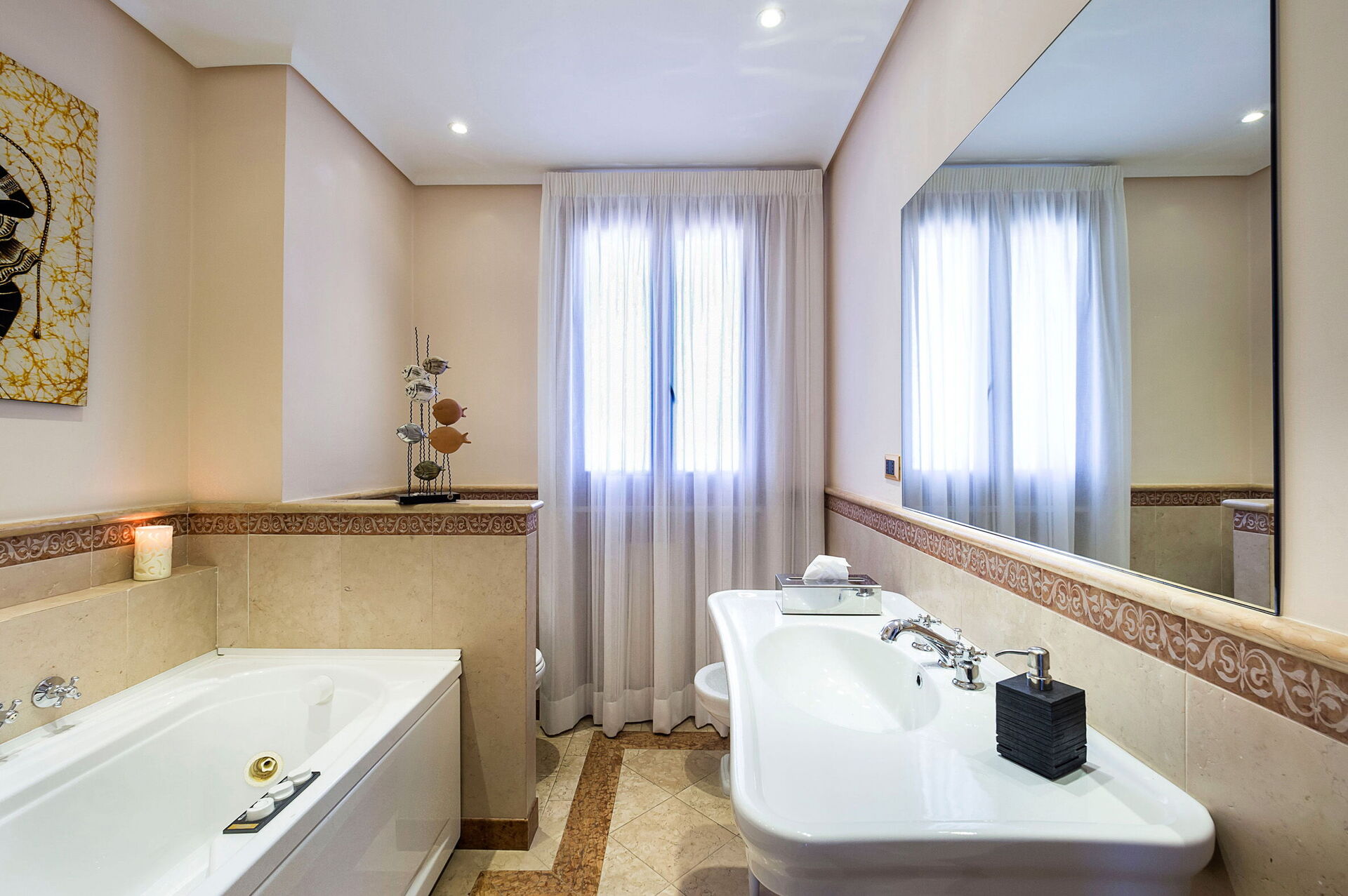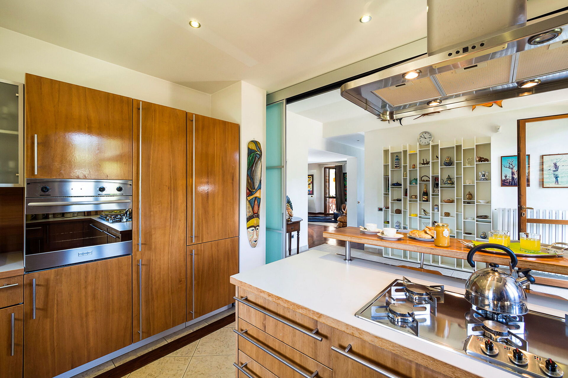 This enchanting villa has 3 floors (one is an attic), common areas equipped with all amenities, and 4 bedrooms to comfortably accommodate up to 8 people. The interiors are modern and tastefully furnished, with a touch of the exotic.