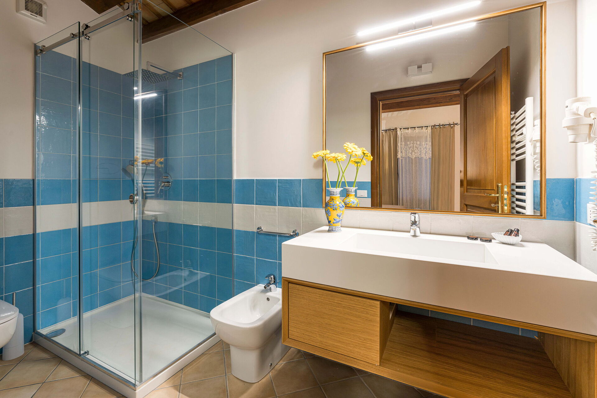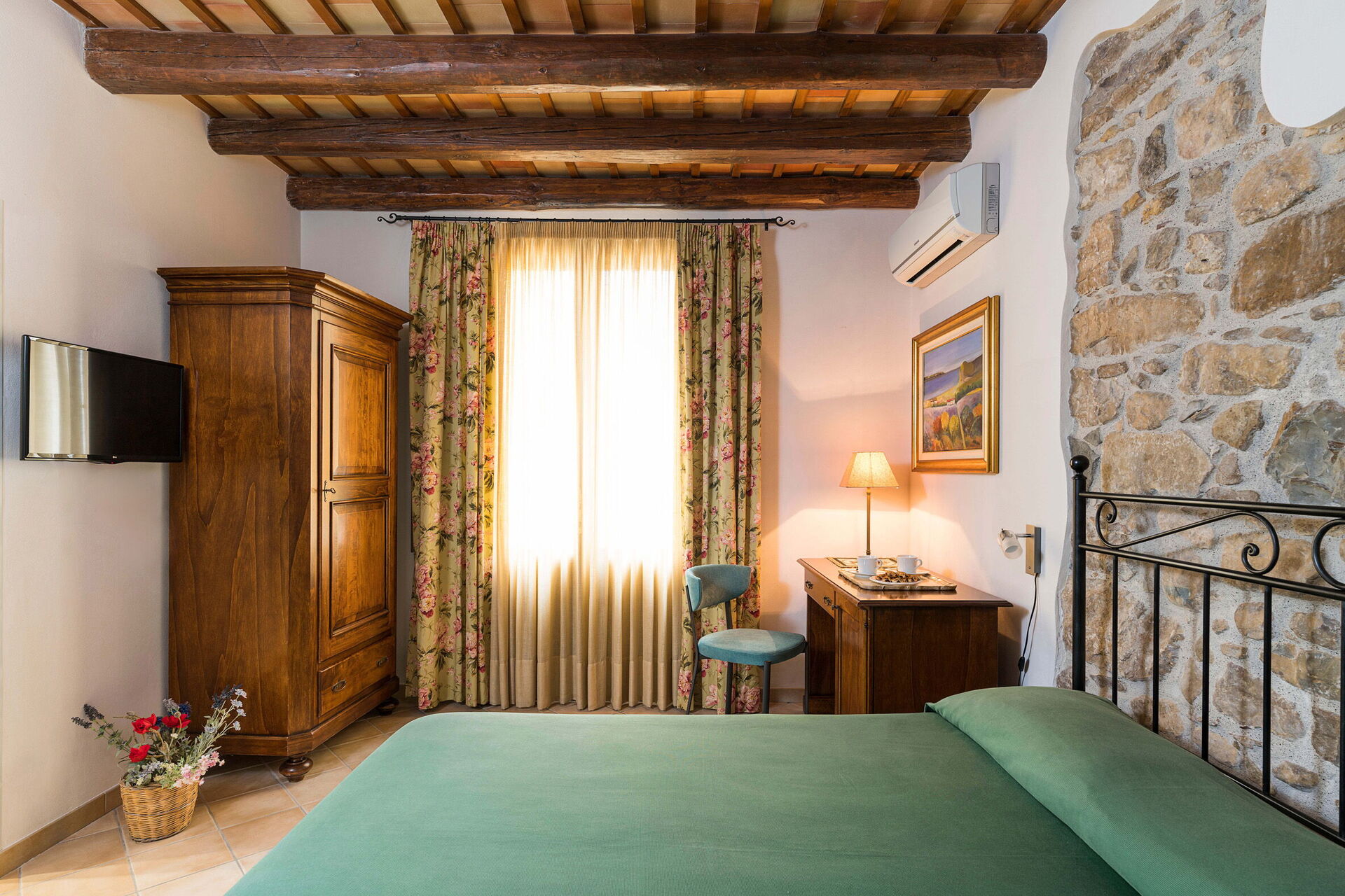 The eight bedrooms with en-suite bathrooms are furnished in nice country house style and are equipped with air conditioning, minibar and LCD television.